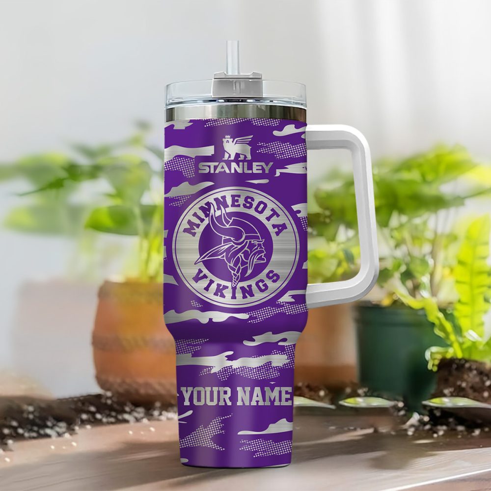 Minnesota Vikings Nfl Camouflage Custom Stanley Quencher 40Oz Stainless Steel Tumbler With Handle