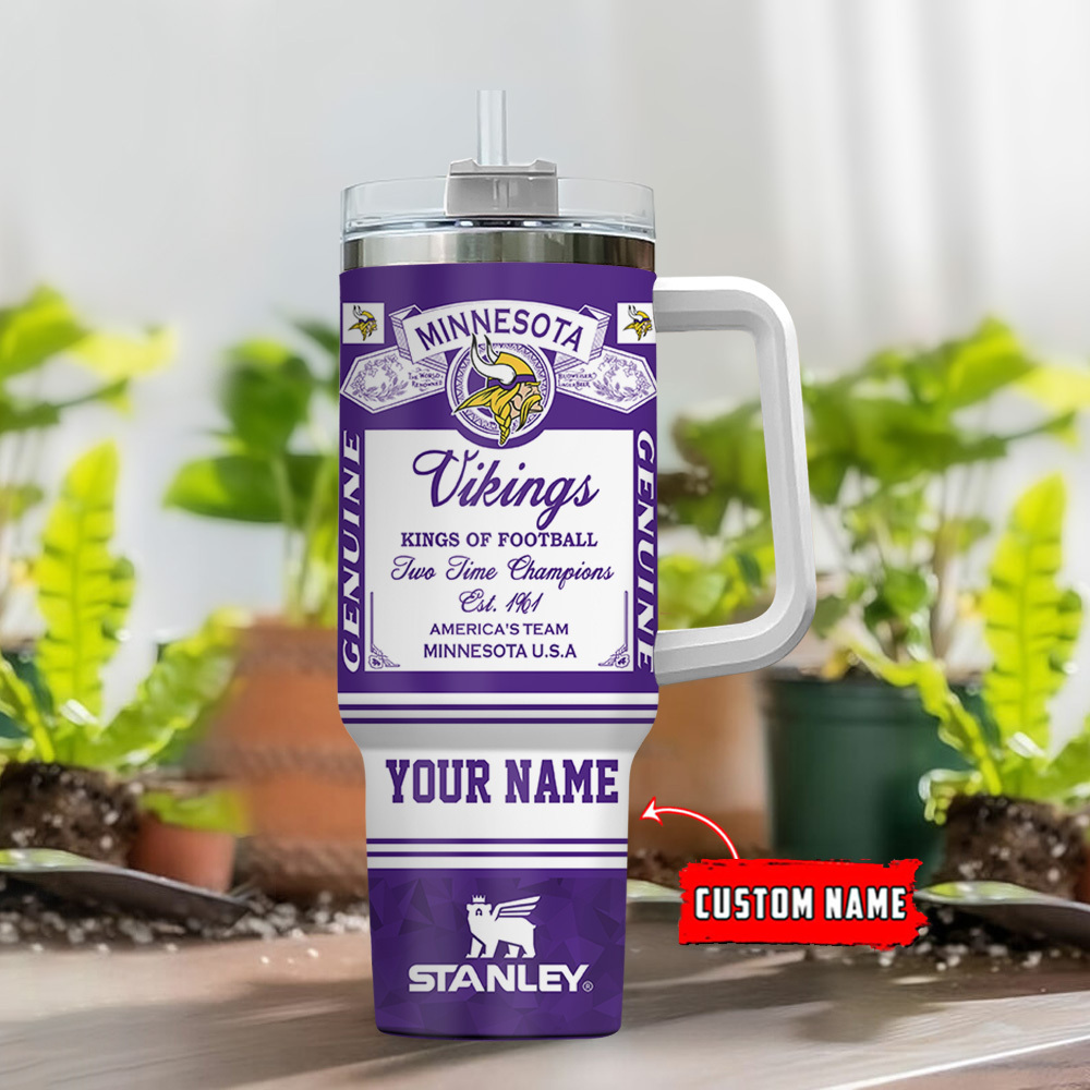 Minnesota Vikings Nfl Laser Engraved Effect Custom Stanley Quencher 40Oz Stainless Steel Tumbler With Handle