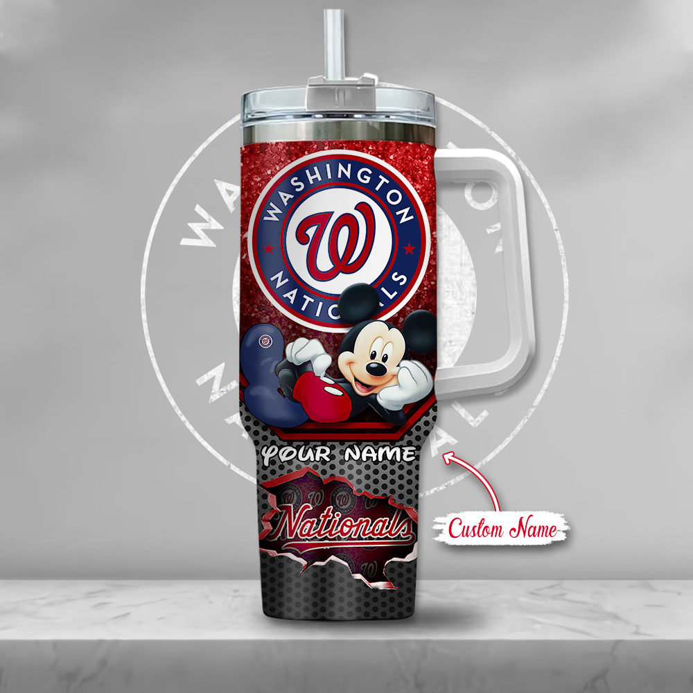 Mlb Washington Nationals Mickey Mouse Custom Stanley Quencher 40Oz Stainless Steel Tumbler With Handle