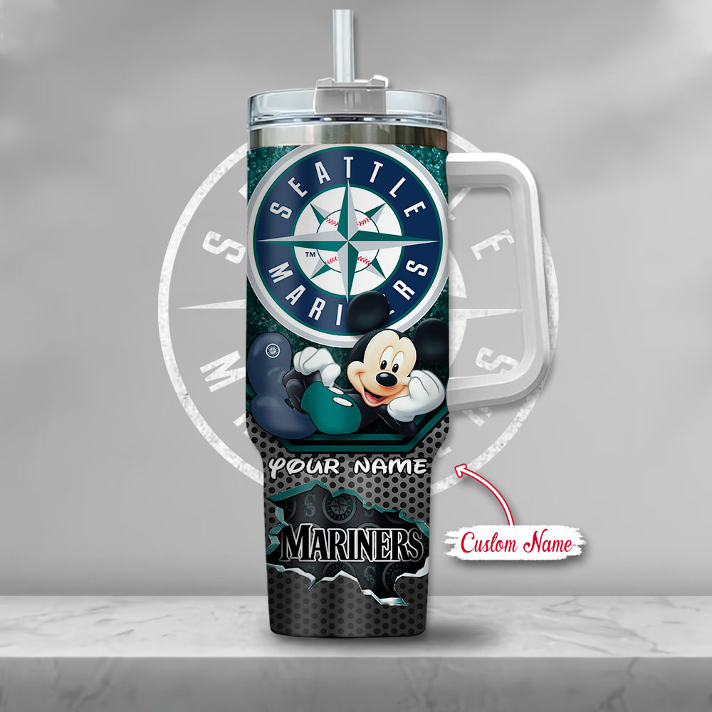 Mlb Seattle Mariners Mickey Mouse Custom Stanley Quencher 40Oz Stainless Steel Tumbler With Handle