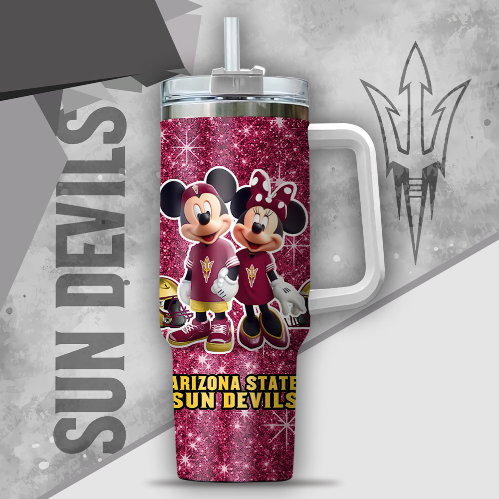 Ncaa Arizona State Sun Devils Mickey And Minnie Couple Custom Stanley Quencher 40Oz Stainless Steel Tumbler With Handle
