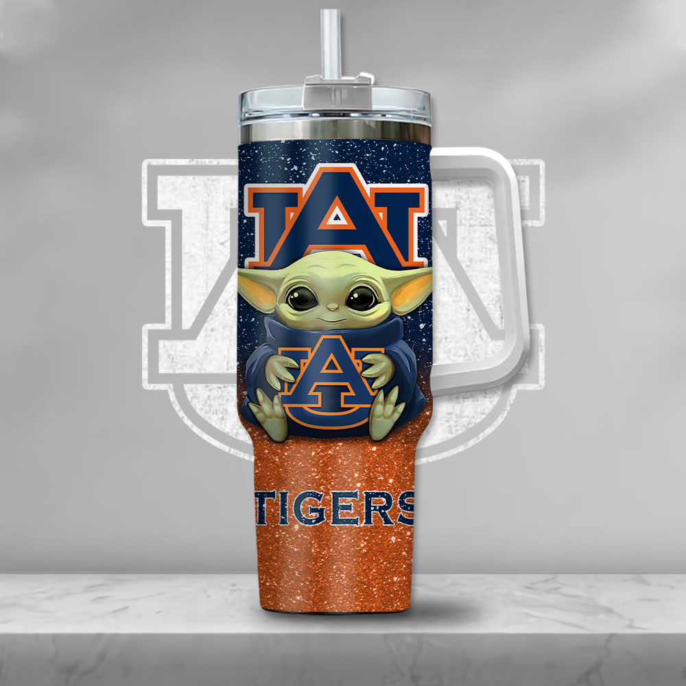 Ncaa Auburn Tigers Baby Yoda Custom Stanley Quencher 40Oz Stainless Steel Tumbler With Handle