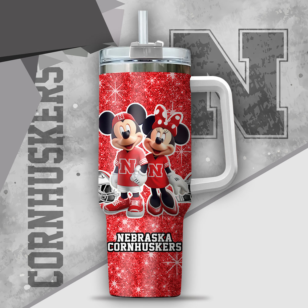 Ncaa Nebraska Cornhuskers Mickey And Minnie Couple Custom Stanley Quencher 40Oz Stainless Steel Tumbler With Handle