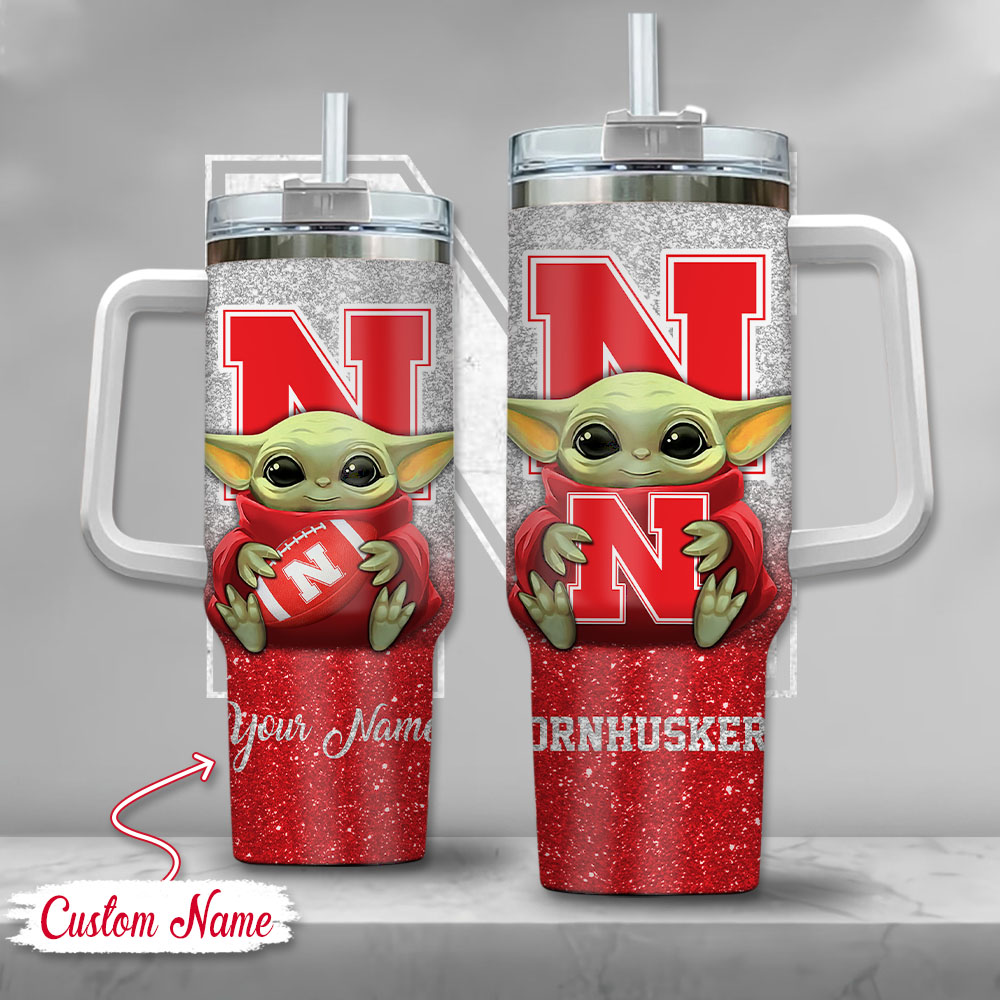 Ncaa Nebraska Cornhuskers Baby Yoda Custom Stanley Quencher 40Oz Stainless Steel Tumbler With Handle