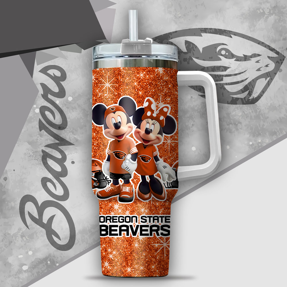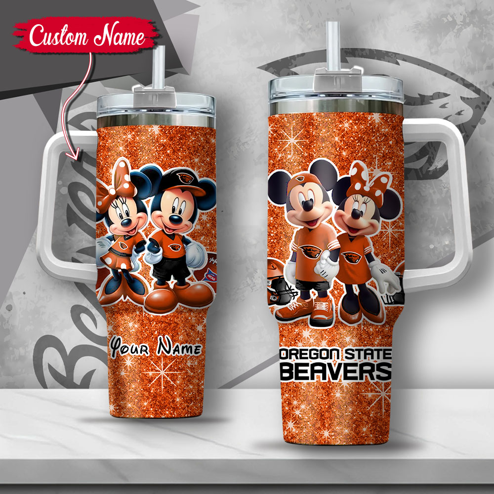 Ncaa Oregon State Beavers Mickey And Minnie Couple Custom Stanley Quencher 40Oz Stainless Steel Tumbler With Handle