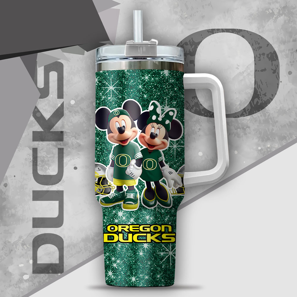 Ncaa Oregon Ducks Mickey And Minnie Couple Custom Stanley Quencher 40Oz Stainless Steel Tumbler With Handle