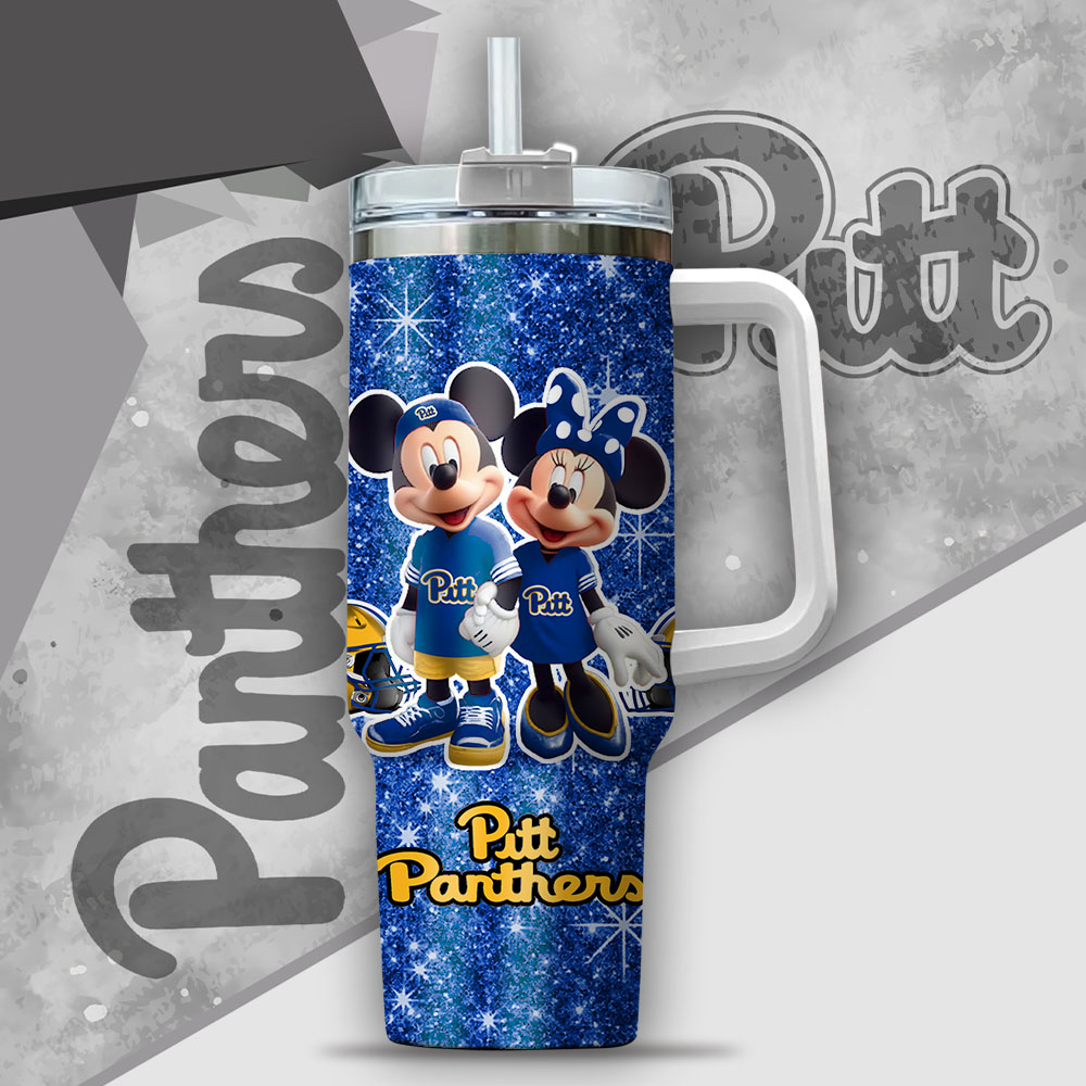 Ncaa Pittsburgh Panthers Mickey And Minnie Couple Custom Stanley Quencher 40Oz Stainless Steel Tumbler With Handle
