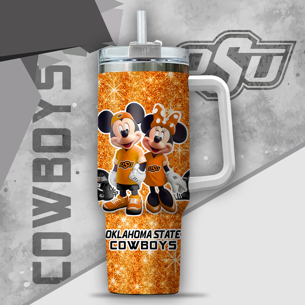 Ncaa Oklahoma State Cowboys Mickey And Minnie Couple Custom Stanley Quencher 40Oz Stainless Steel Tumbler With Handle