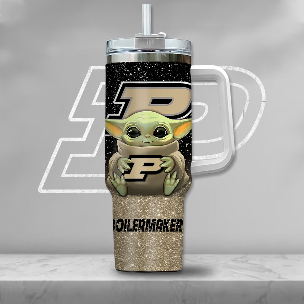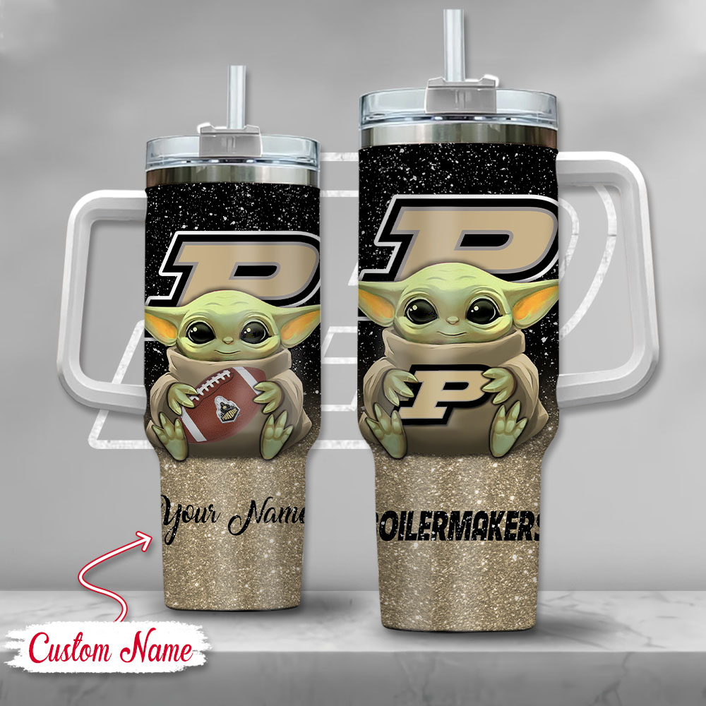 Ncaa Purdue Boilermakers Baby Yoda Custom Stanley Quencher 40Oz Stainless Steel Tumbler With Handle