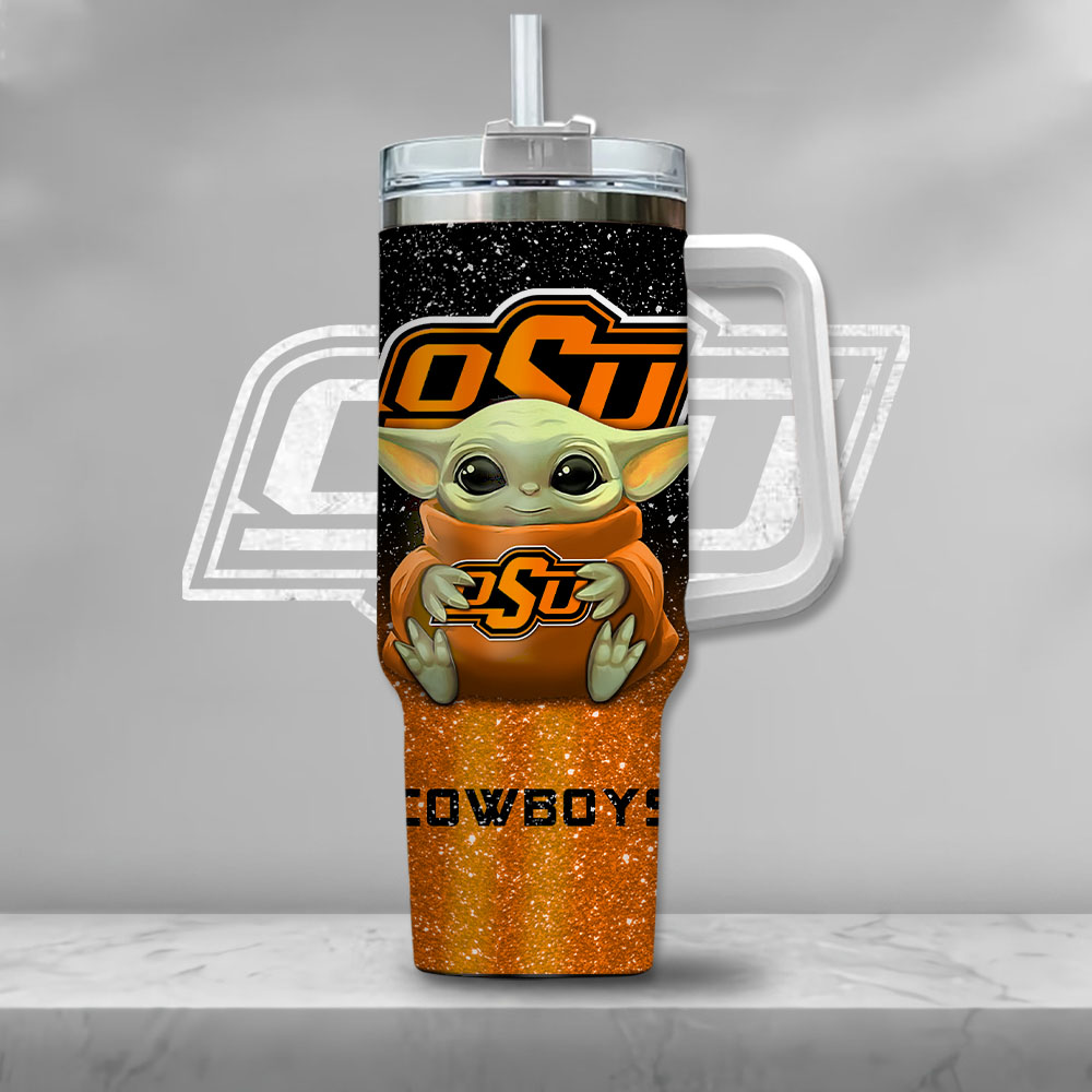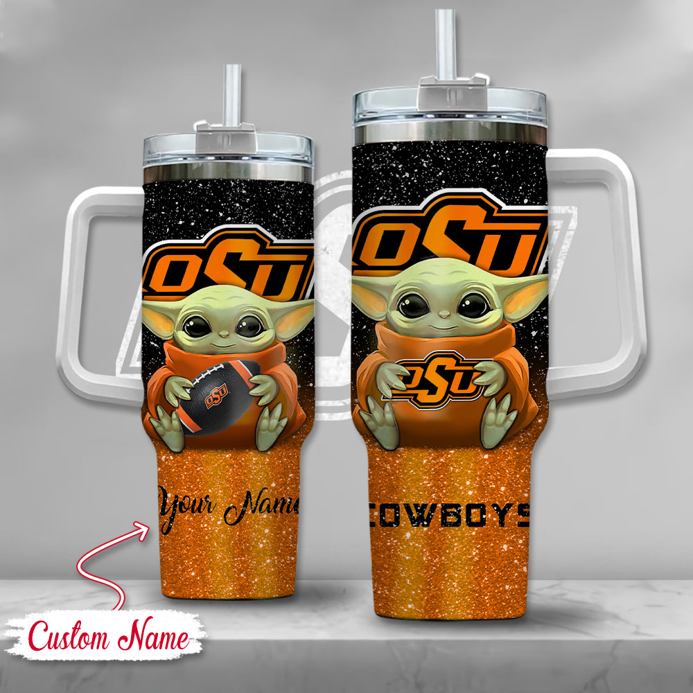 Ncaa Oklahoma State Cowboys Baby Yoda Custom Stanley Quencher 40Oz Stainless Steel Tumbler With Handle