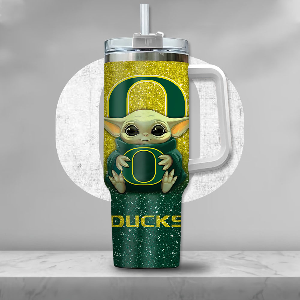 Ncaa Oregon Ducks Baby Yoda Custom Stanley Quencher 40Oz Stainless Steel Tumbler With Handle