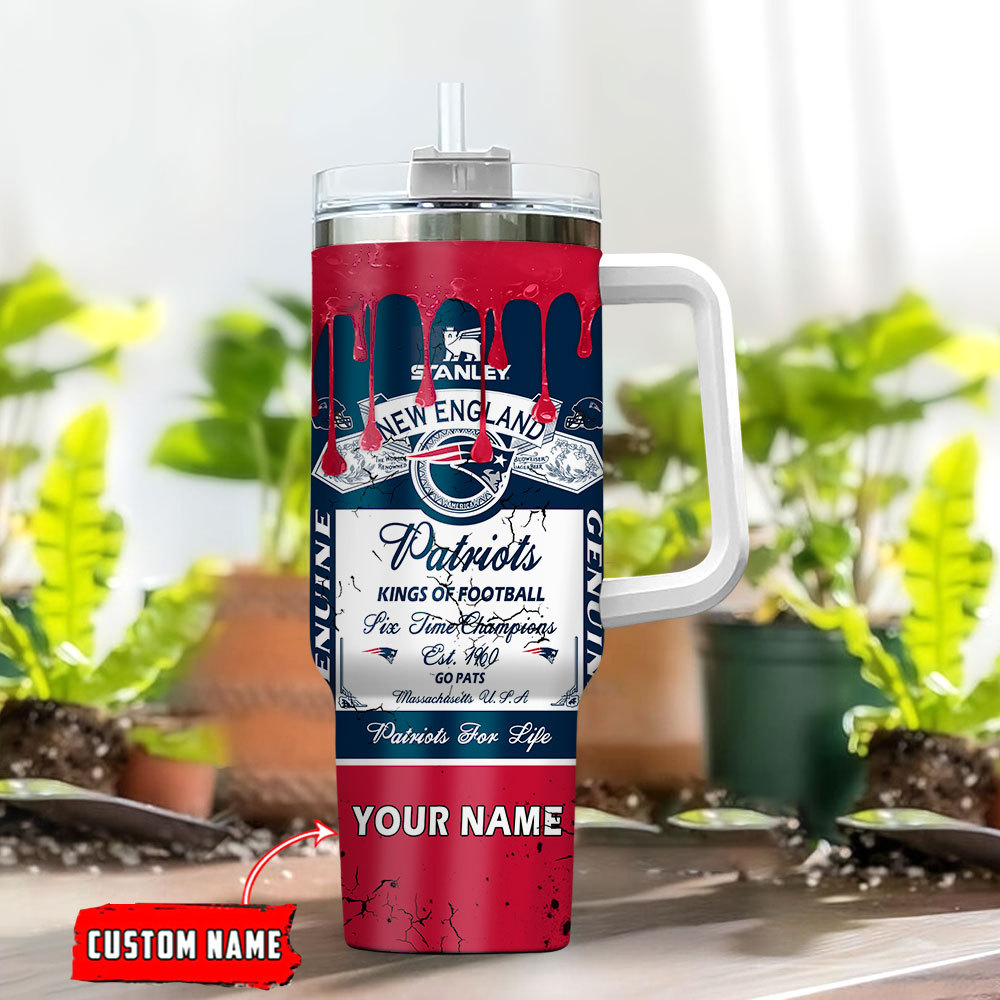 New England Patriots Nfl Kings Of Football Custom Stanley Quencher 40Oz Stainless Steel Tumbler With Handle