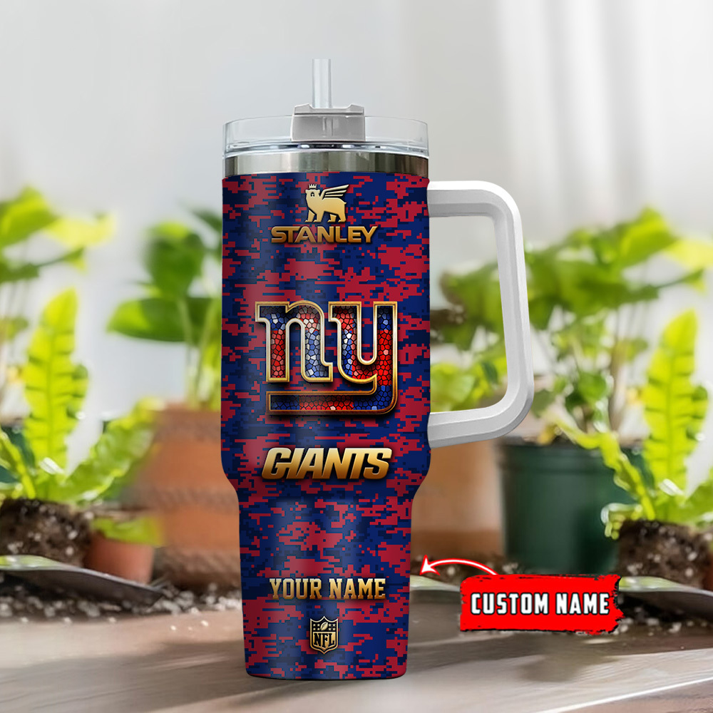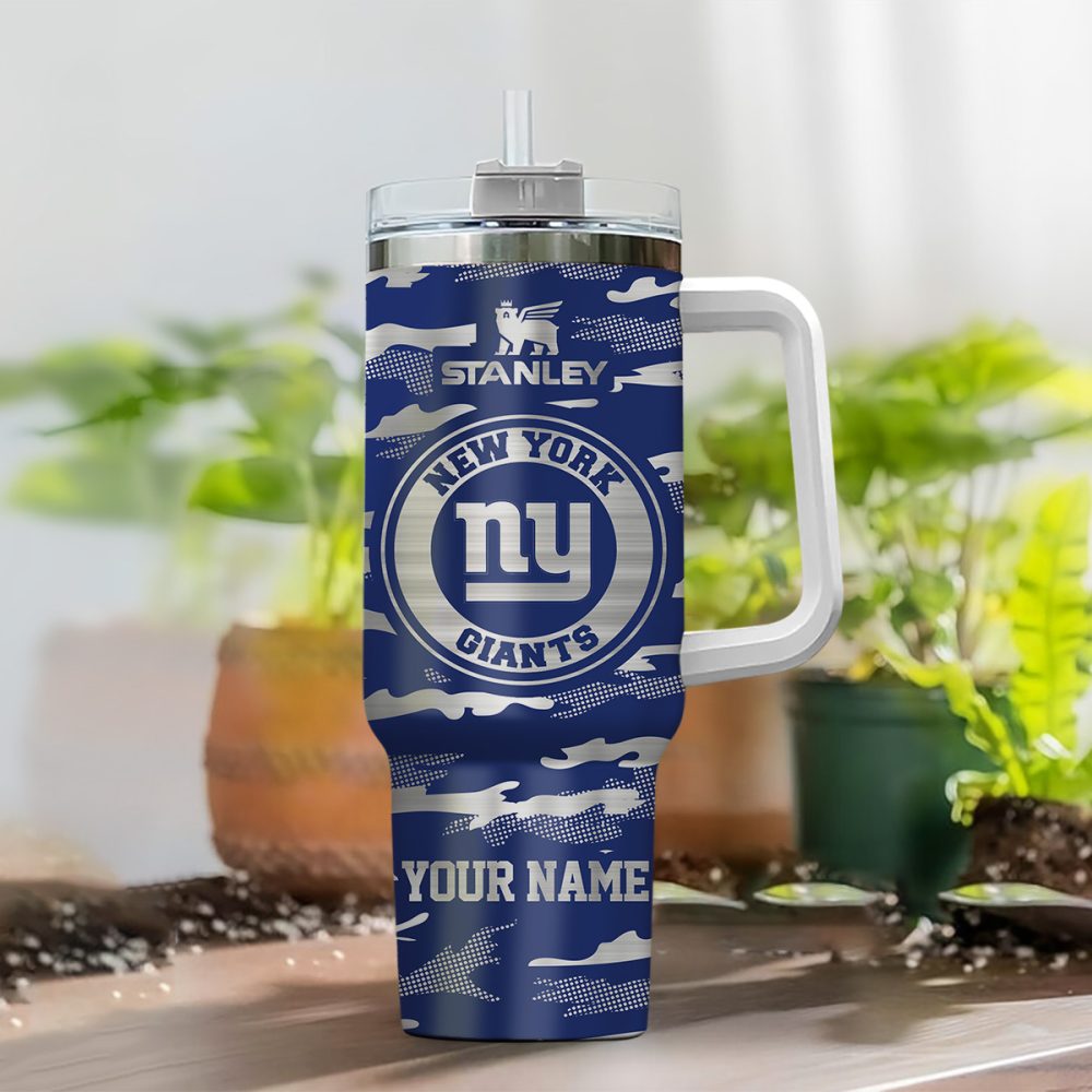 New York Giants Nfl Camo Pattern Custom Stanley Quencher 40Oz Stainless Steel Tumbler With Handle