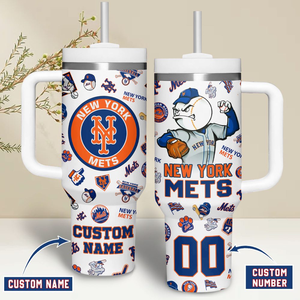 New York Mets Mlb Custom Stanley Quencher 40Oz Stainless Steel White