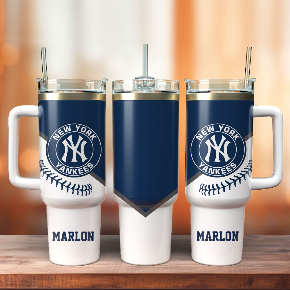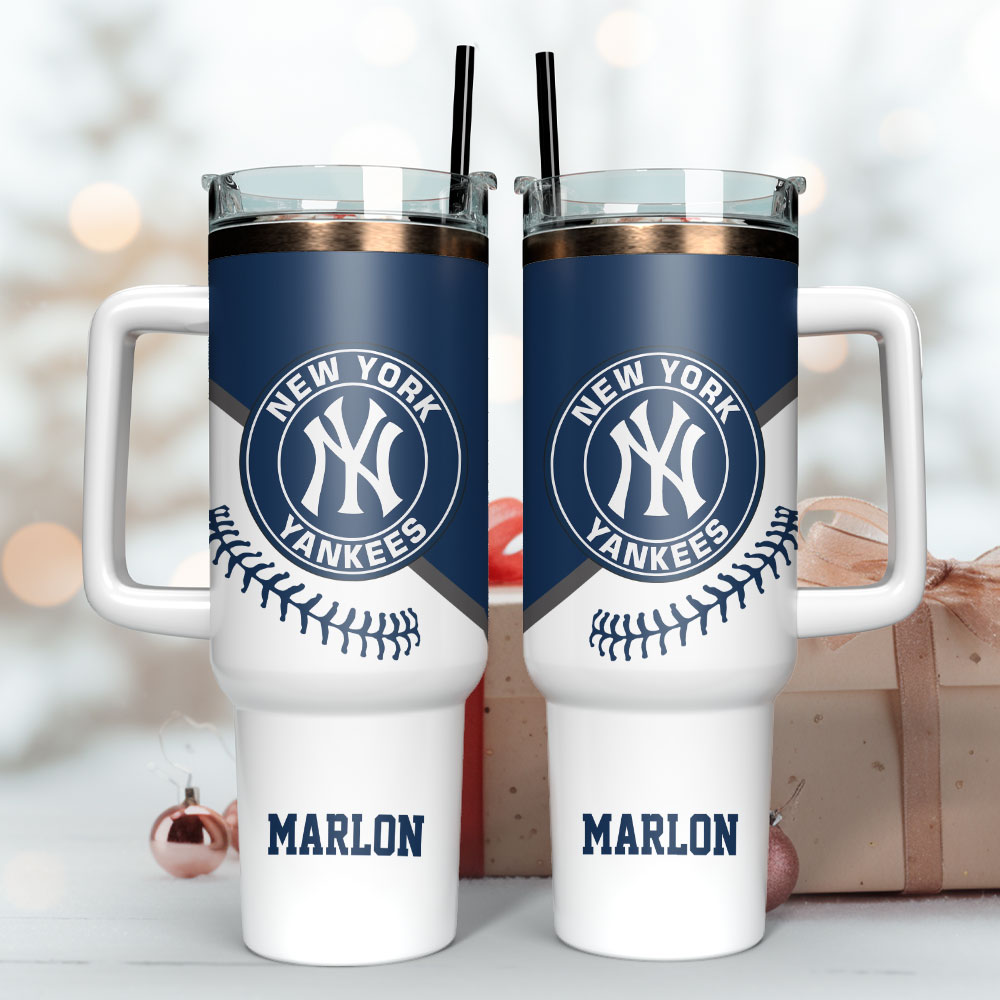 New York Yankees Baseball Team Mlb Custom Stanley Quencher 40Oz Stainless Steel Tumbler With Handle