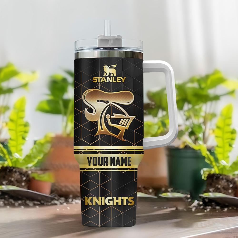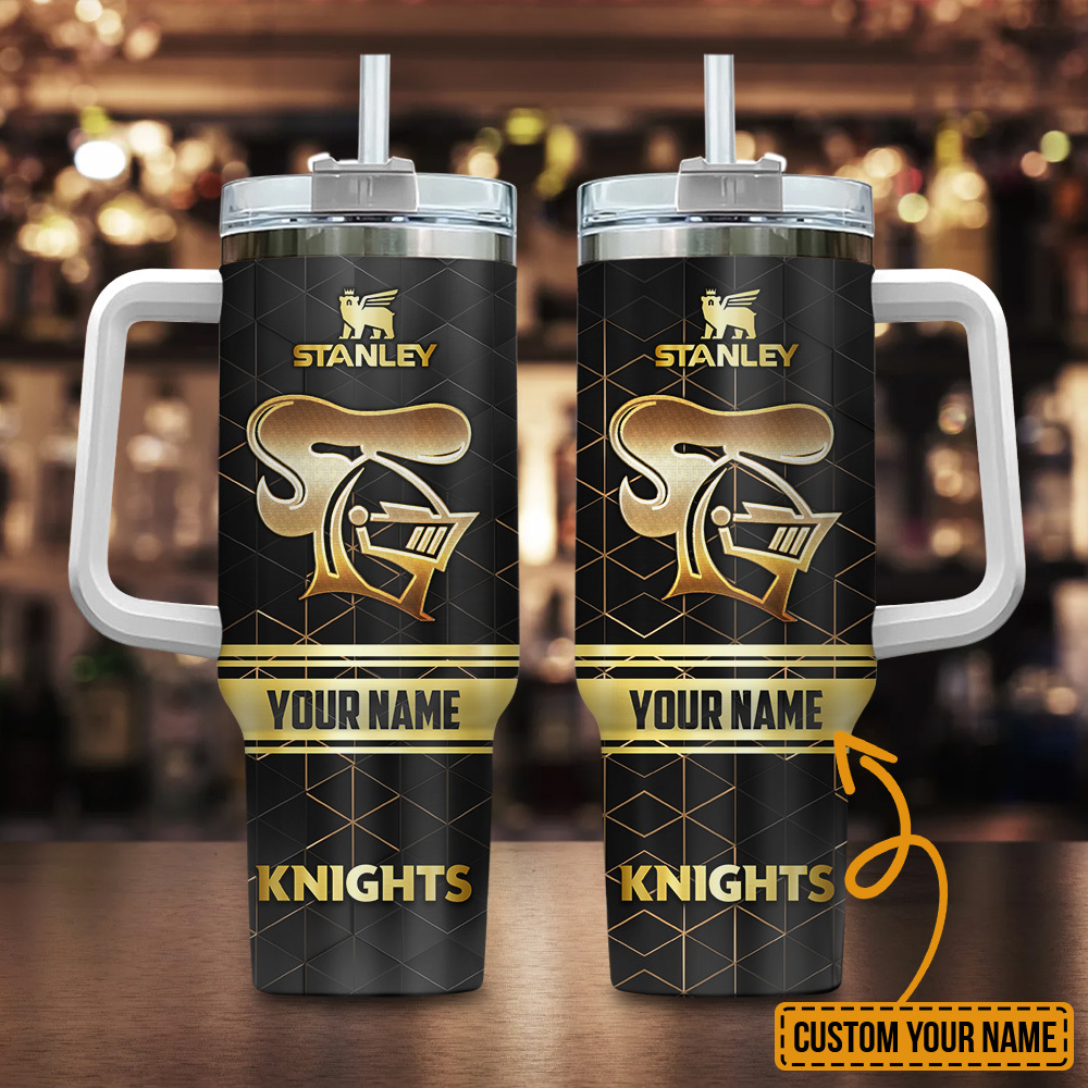 Newcastle Knights Nrl Golden Logo Custom Stanley Quencher 40Oz Stainless Steel Tumbler With Handle