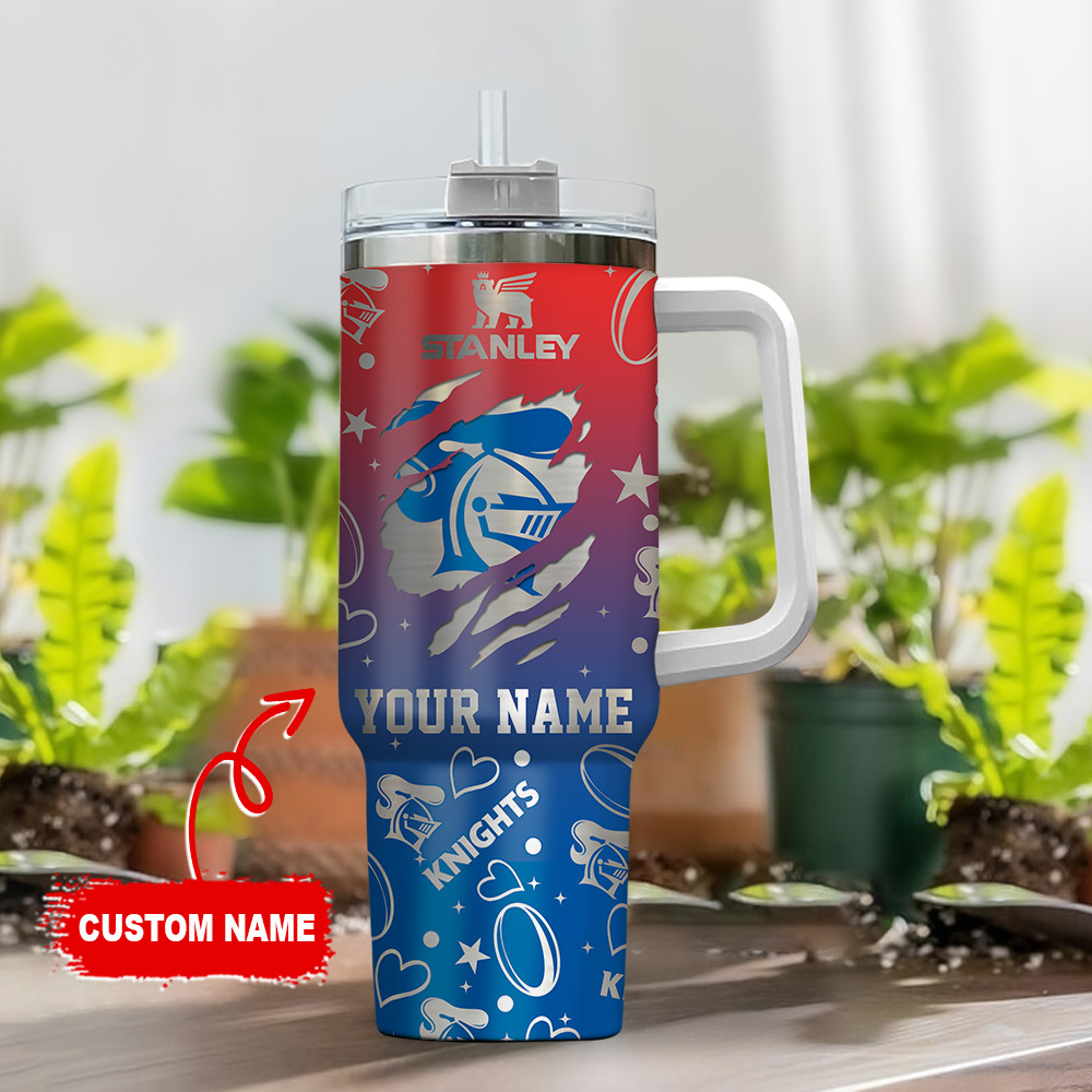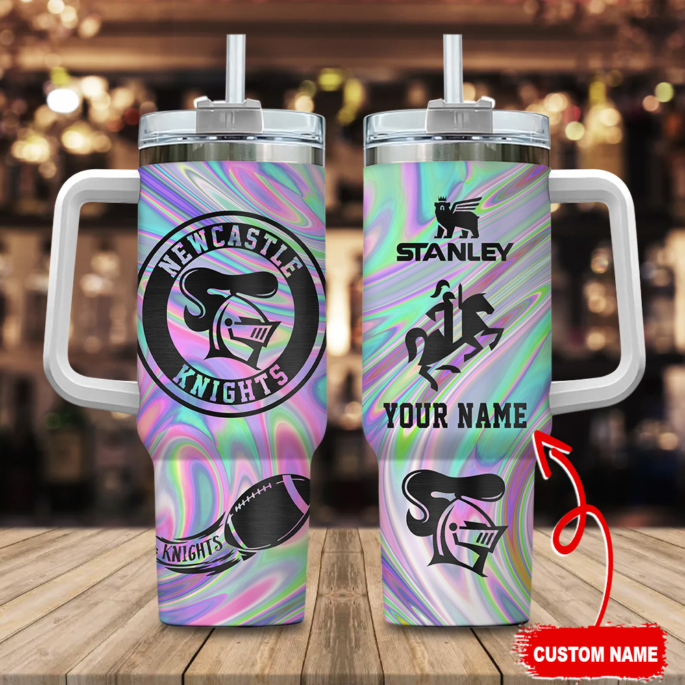 Newcastle Knights Nrl Hologram Effect Custom Stanley Quencher 40Oz Stainless Steel Tumbler With Handle