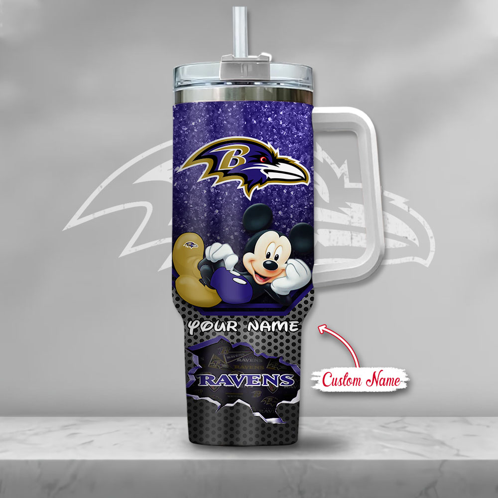 Nfl Baltimore Ravens Mickey Mouse Custom Stanley Quencher 40Oz Stainless Steel Tumbler With Handle
