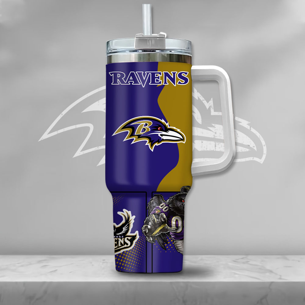 Nfl Baltimore Ravens Custom Stanley Quencher 40Oz Stainless Steel Tumbler With Handle