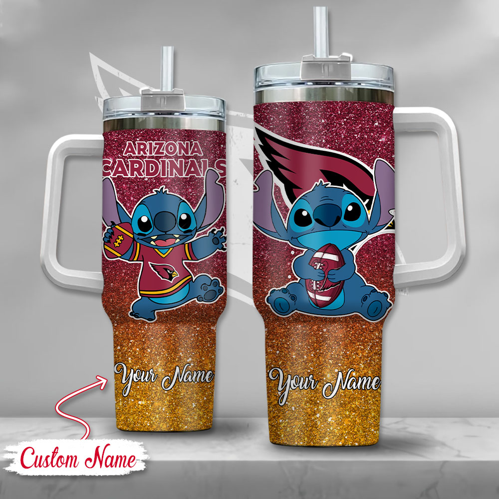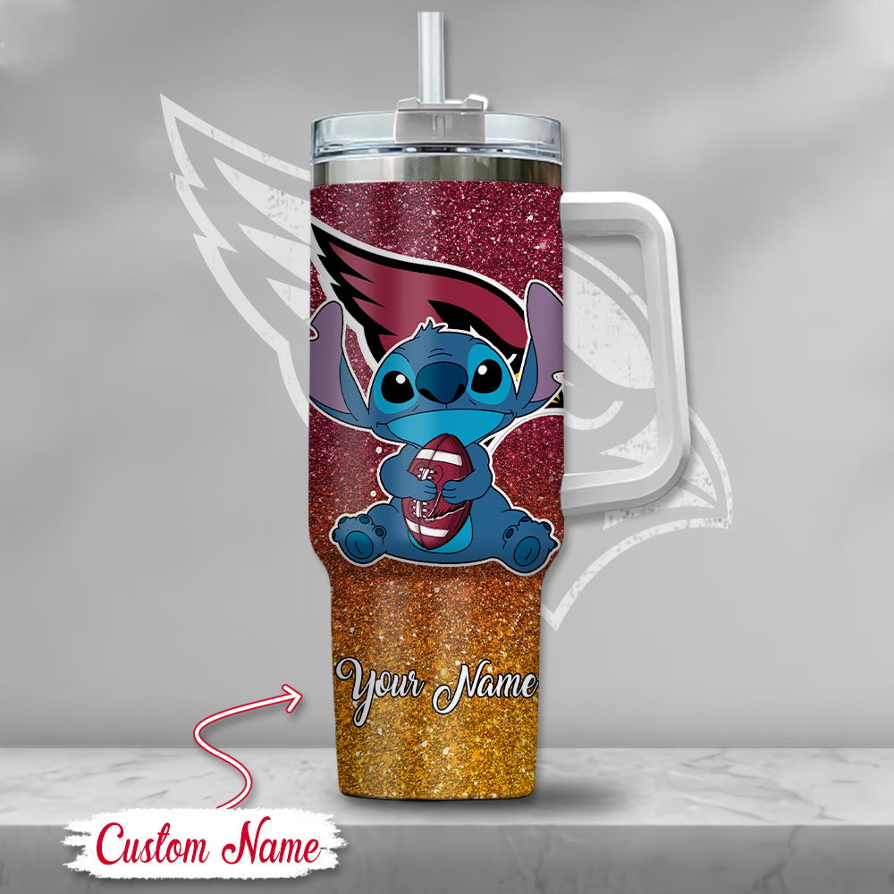 Nfl Arizona Cardinals Stitch Glitter Custom Stanley Quencher 40Oz Stainless Steel Tumbler With Handle