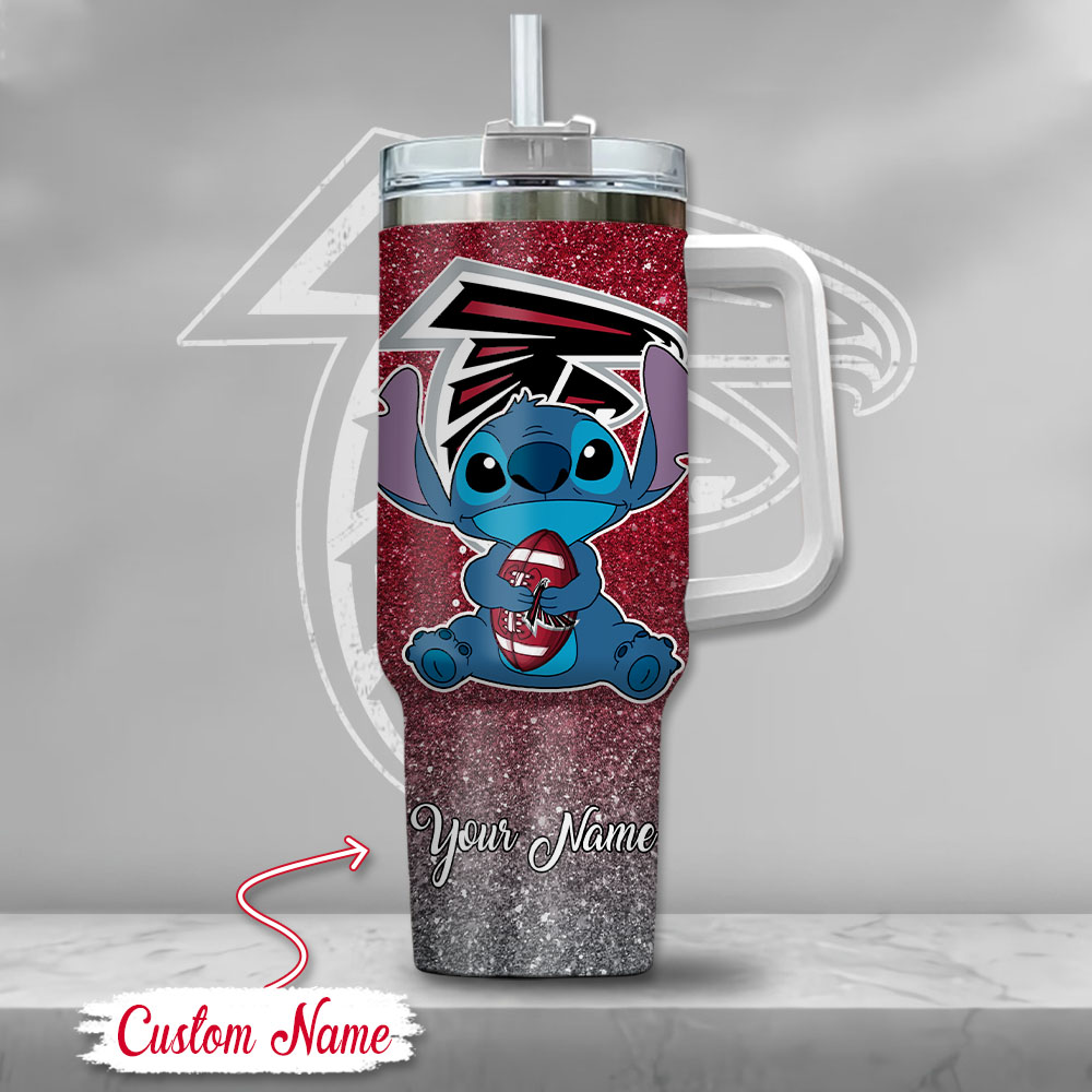 Nfl Atlanta Falcons Stitch Glitter Custom Stanley Quencher 40Oz Stainless Steel Tumbler With Handle