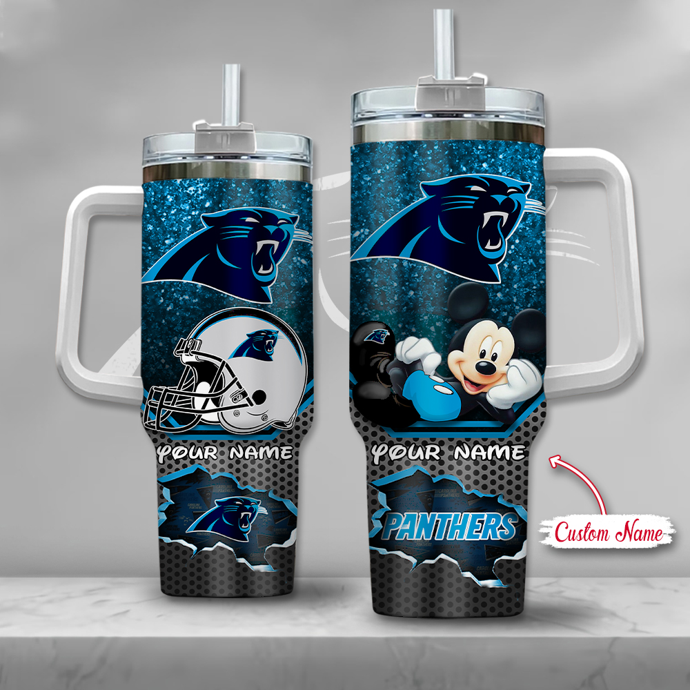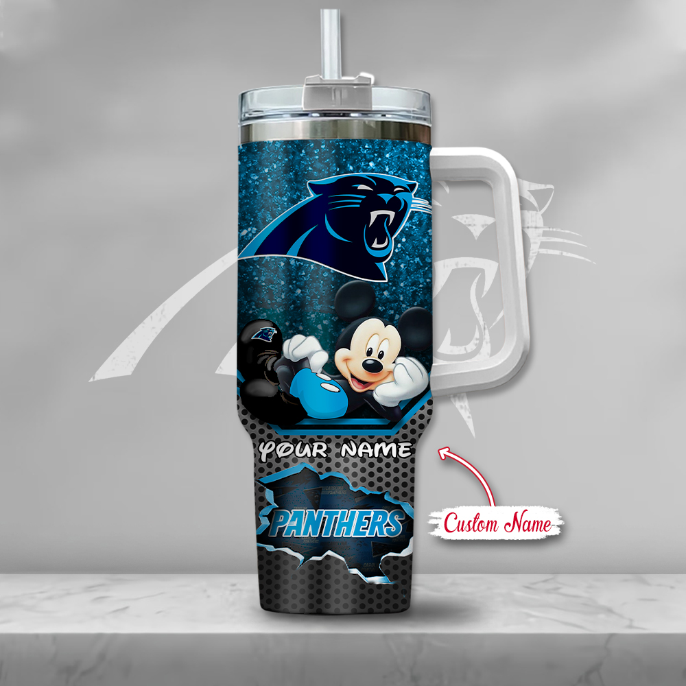 Nfl Carolina Panthers Mickey Mouse Custom Stanley Quencher 40Oz Stainless Steel Tumbler With Handle