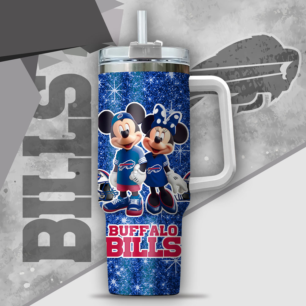 Nfl Buffalo Bills Mickey Mouse Custom Stanley Quencher 40Oz Stainless Steel Tumbler With Handle