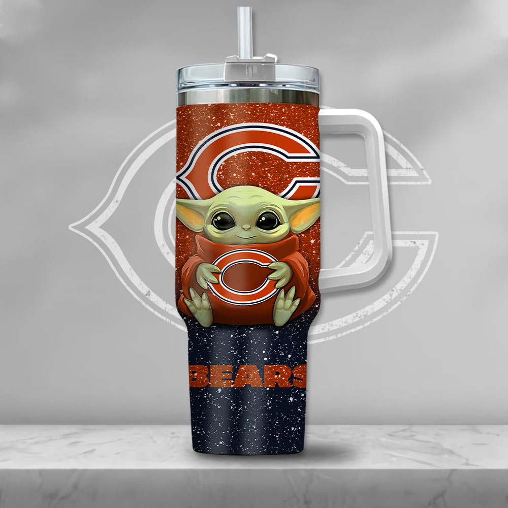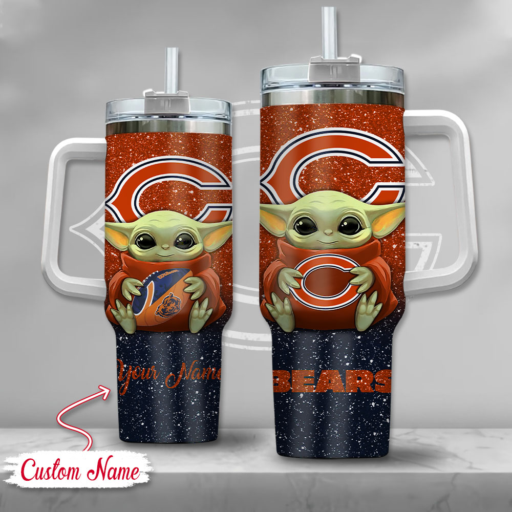 Nfl Chicago Bears Baby Yoda Custom Stanley Quencher 40Oz Stainless Steel Tumbler With Handle