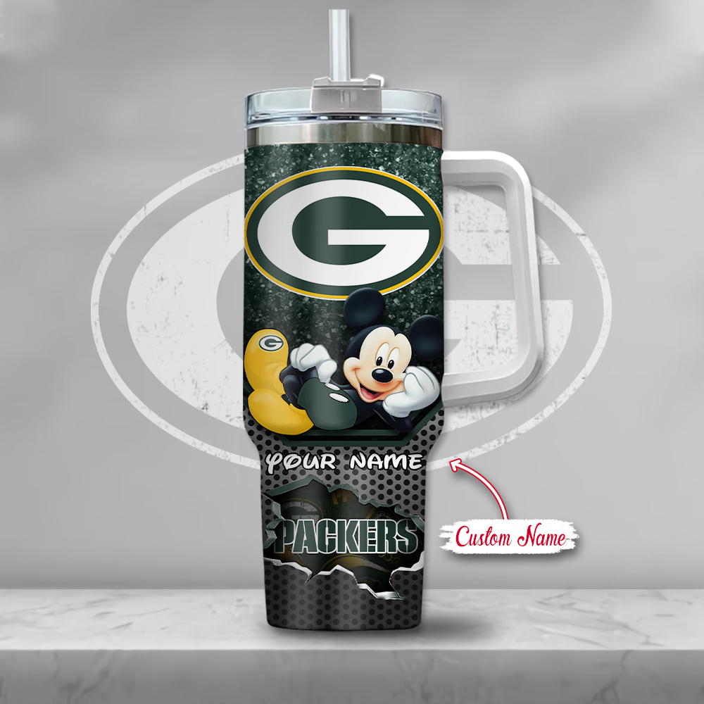 Nfl Green Bay Packers Mickey Mouse Custom Stanley Quencher 40Oz Stainless Steel Tumbler With Handle