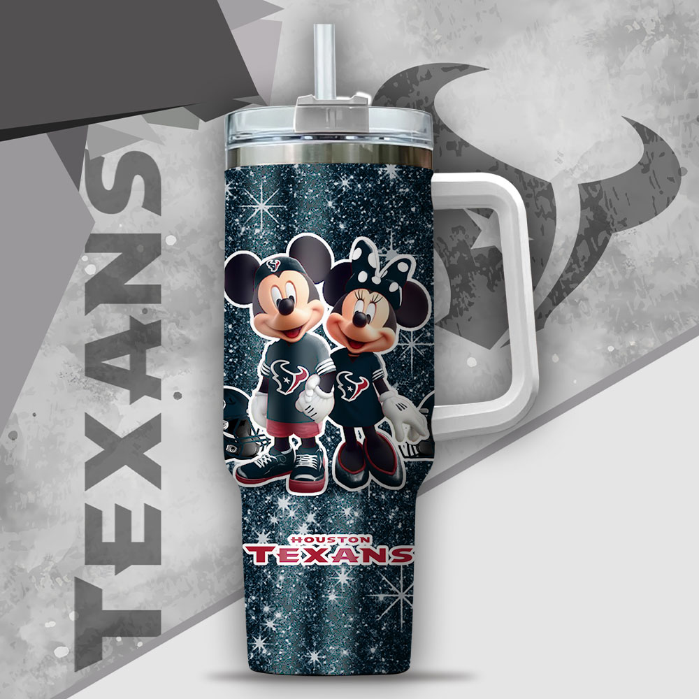 Nfl Houston Texans Mickey And Minnie Couple Custom Stanley Quencher 40Oz Stainless Steel Tumbler With Handle