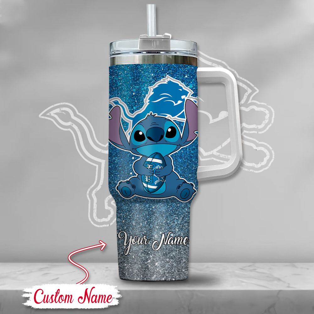 Nfl Detroit Lions Stitch Glitter Custom Stanley Quencher 40Oz Stainless Steel Tumbler With Handle