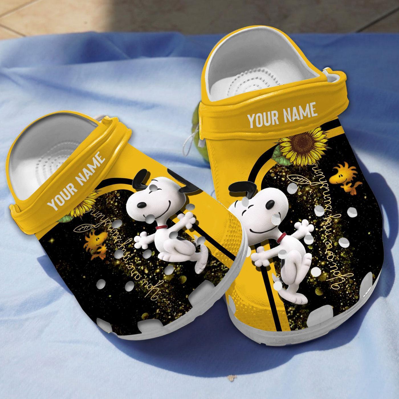 You Are My Sunshine Snoopy Black Cartoon Crocs Custom Footwear For Everyday Use