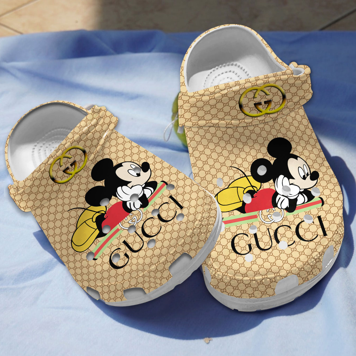 Gucci x Mickey Mouse Cartoon Crocs Custom Footwear For Casual Outfit Wear