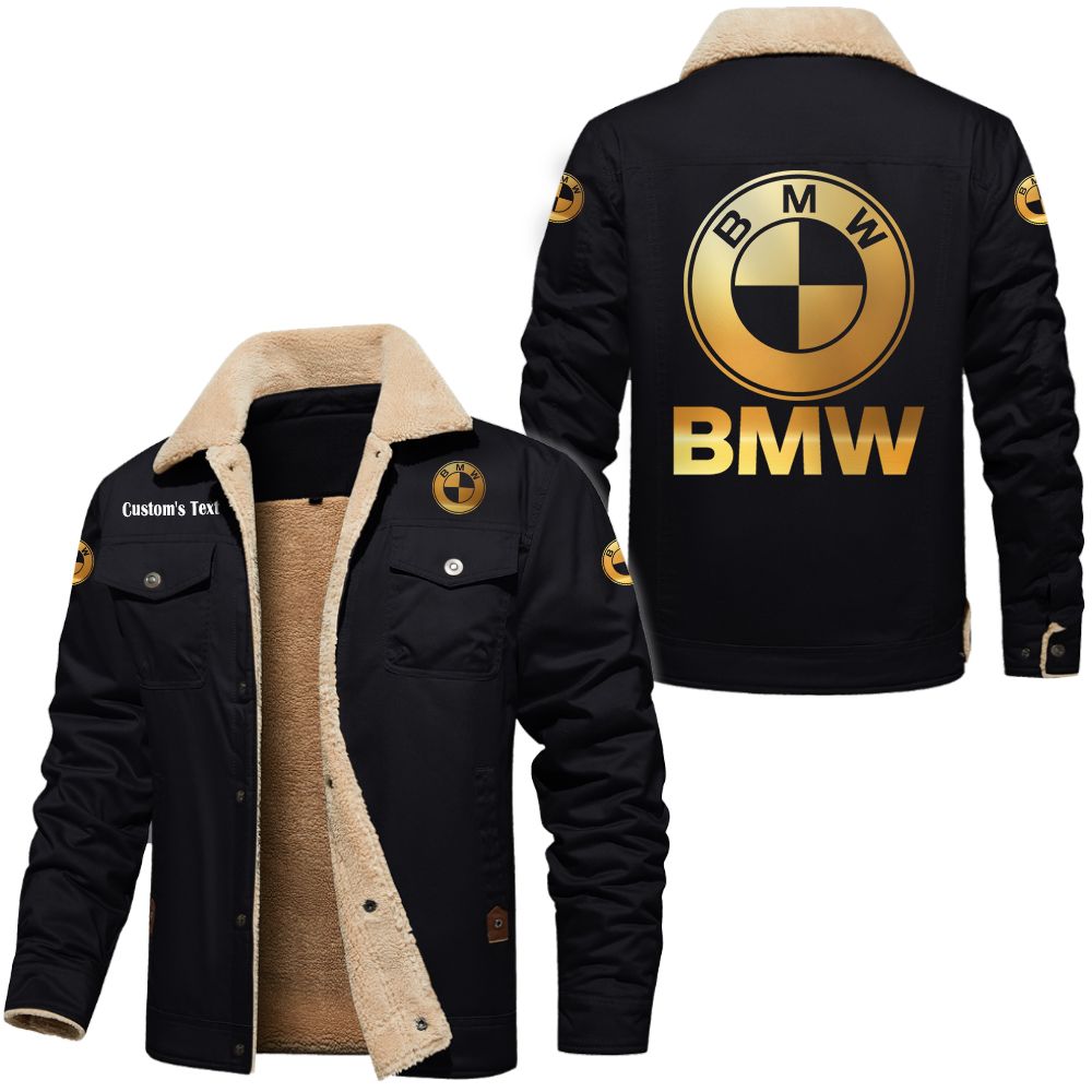 Abarth Golden Logo Custom Cargo Fleece Lined Cotton Jacket Black
