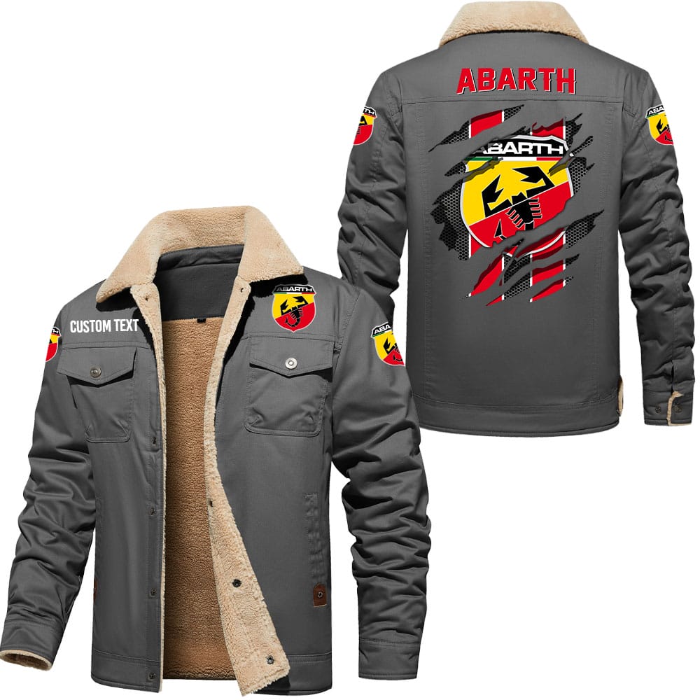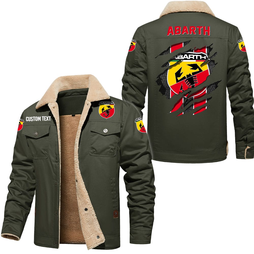 Abarth Logo Custom Name Cargo Fleece Lined Cotton Jacket