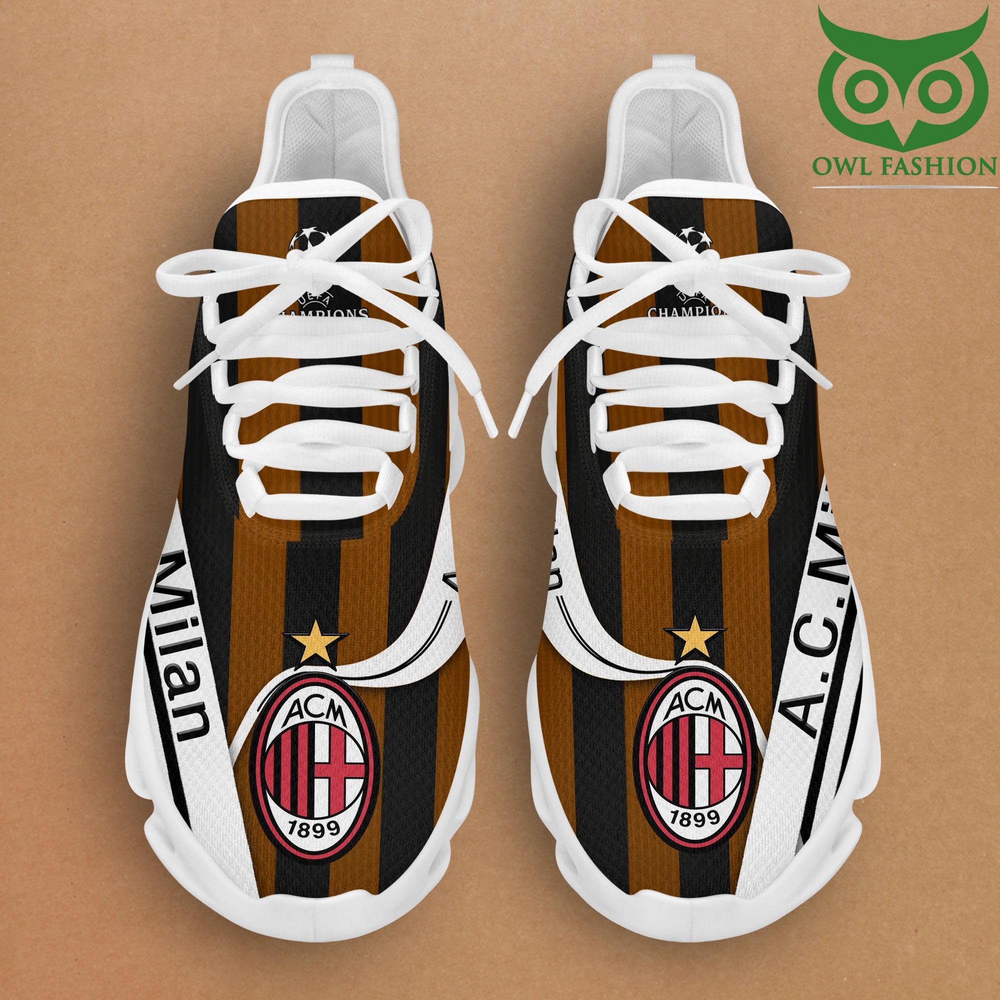 AC Milan Max Soul Shoes Sneakers Printed White And Black Sole For Men And Women