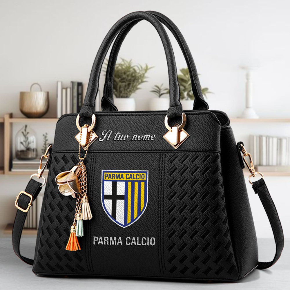 A.C. Perugia Logo Crossbody Zip Hand Bag With Tassel Custom Name For Women