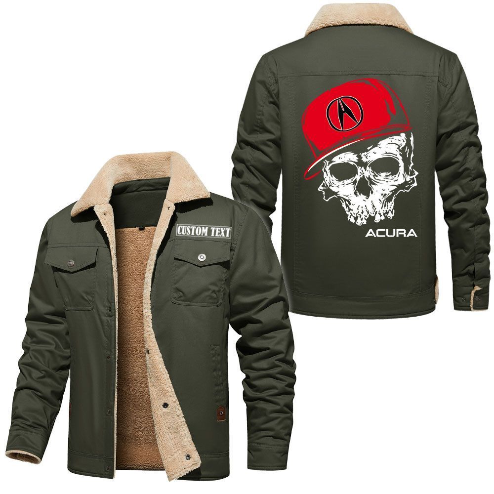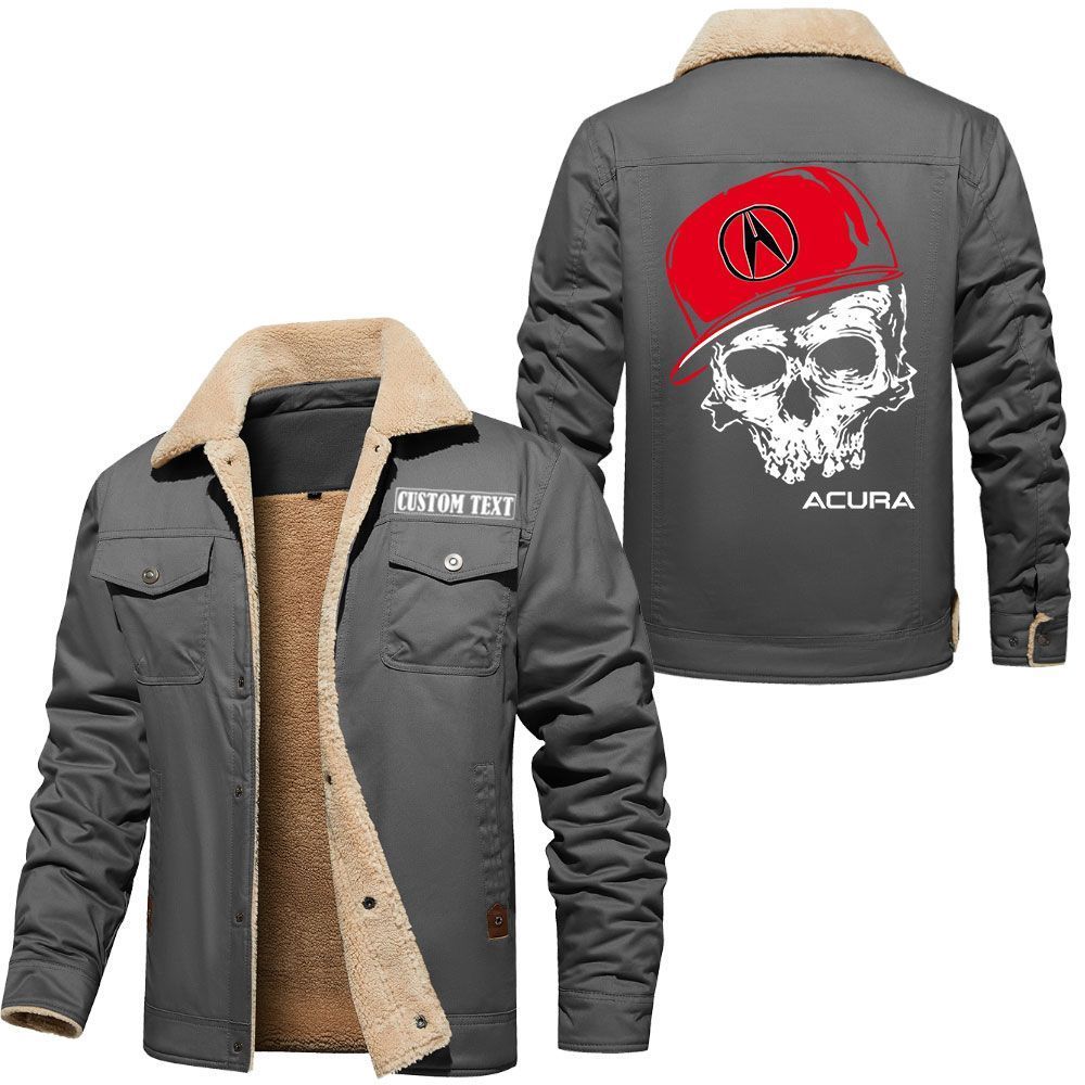Acura Logo Custom Name Cargo Fleece Lined Cotton Jacket Personalized Outerwear with Skull Design
