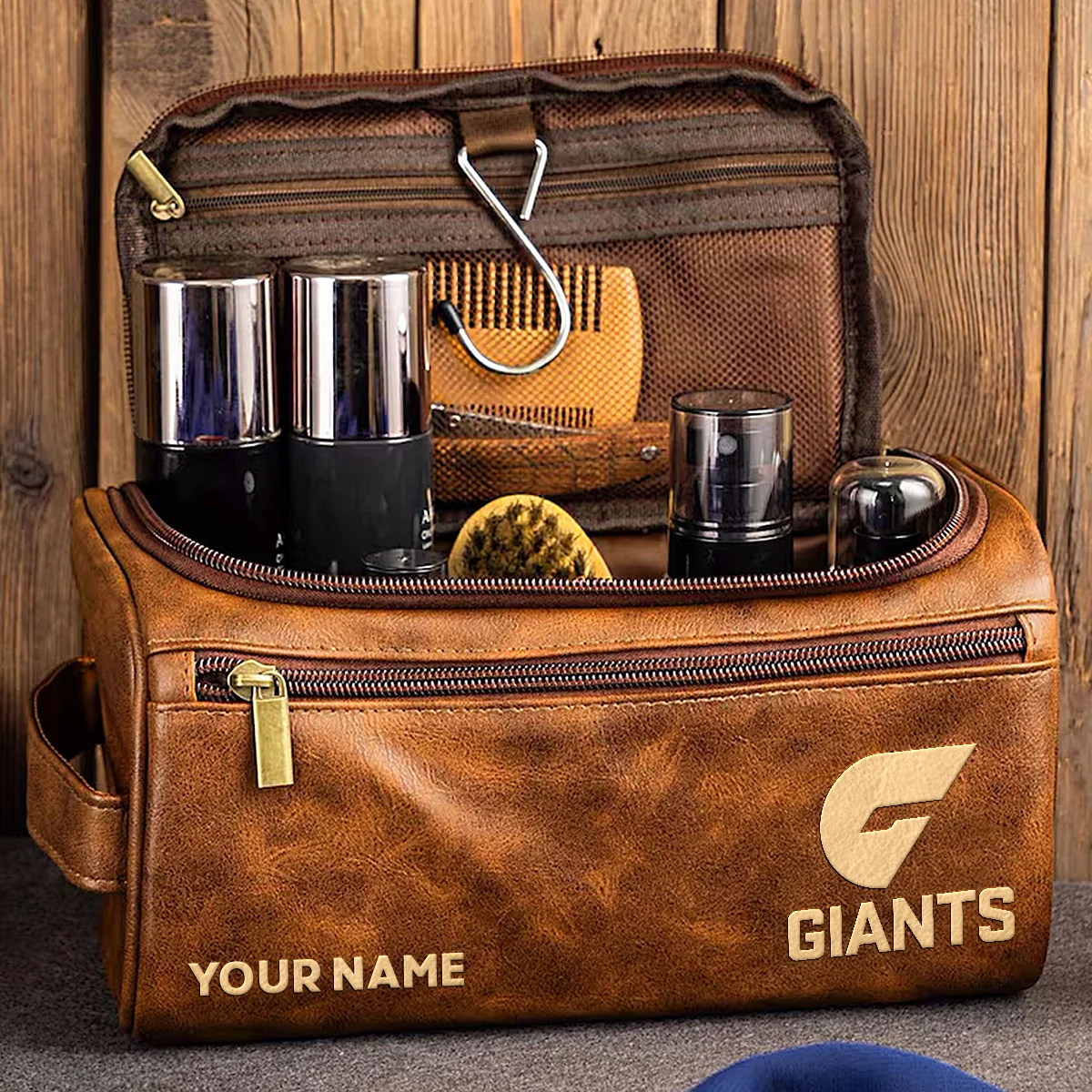 Adelaide Crows AFL Exclusive Logo Personalized Leather Toiletry Bag, Fishing Leather Toiletry Bag