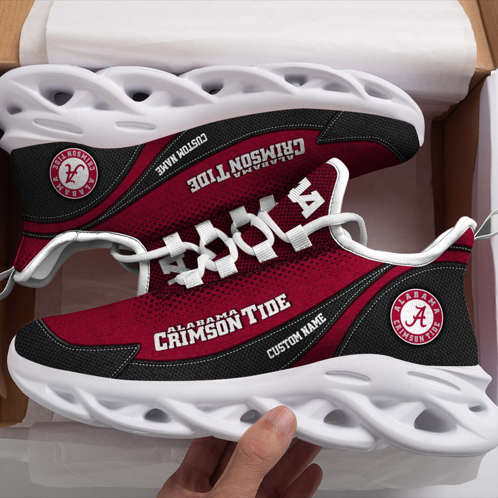 Alabama Crimson Tide NCAA Max Soul Shoes Sneakers Printed White And Black Sole For Men And Women