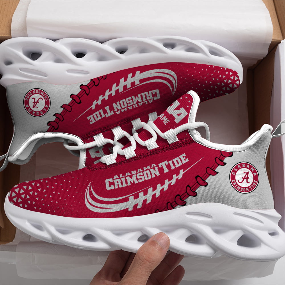 Alabama Crimson Tide NCAA Max Soul Shoes Sneakers Printed White And Black Sole For Men And Women