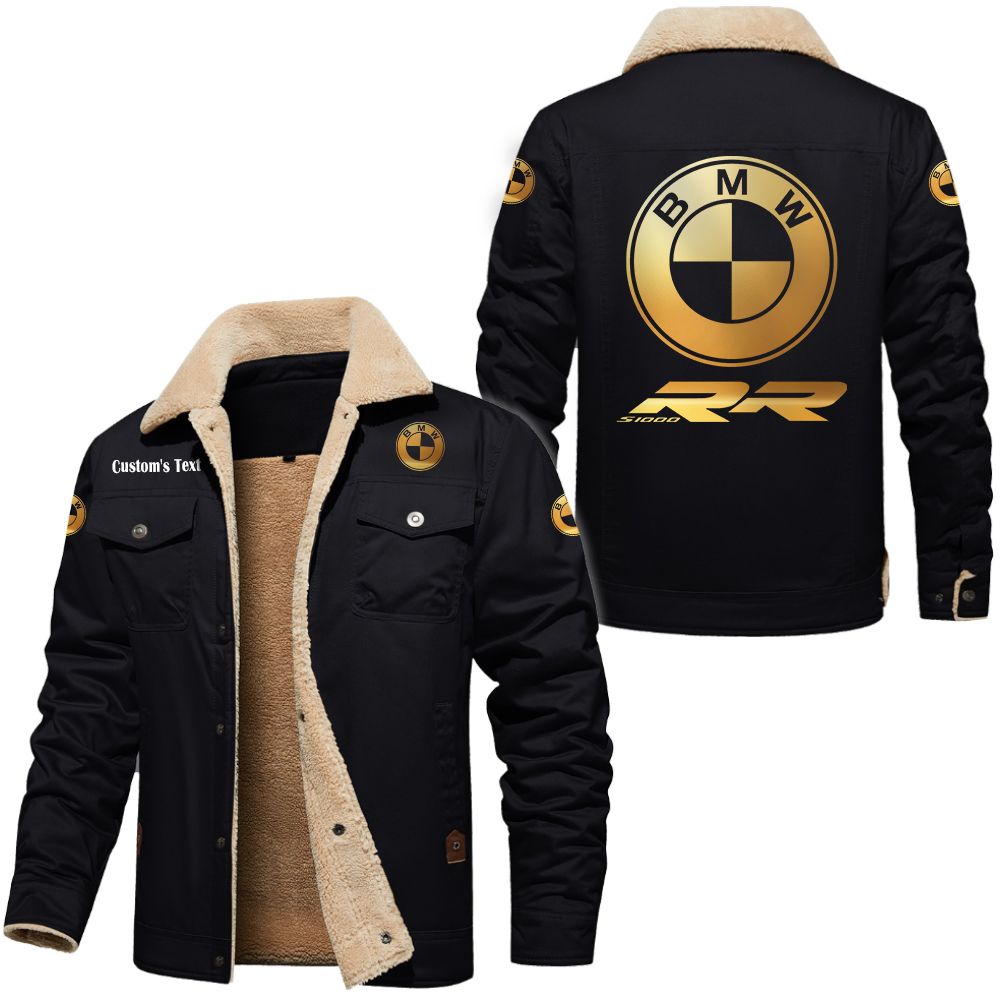 Alfa Romeo Golden Logo Custom Cargo Fleece Lined Cotton Jacket Black
