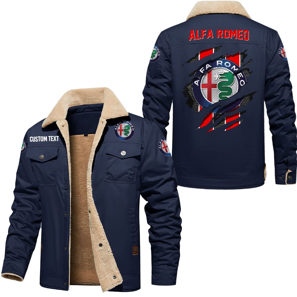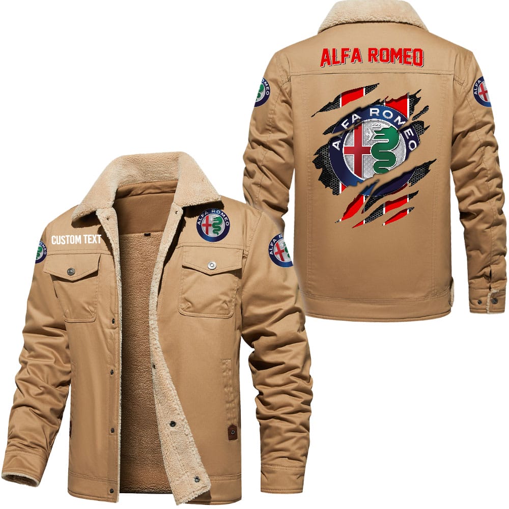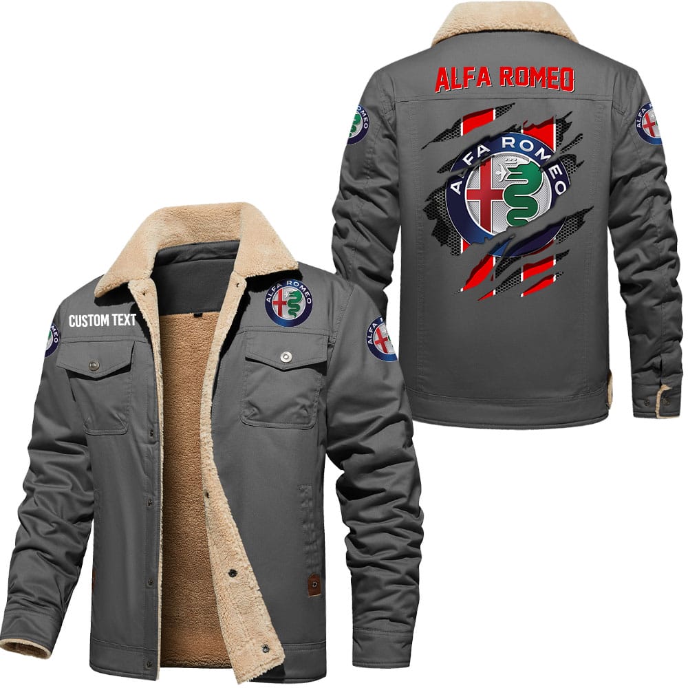 Alfa Romeo Logo Custom Name Cargo Fleece Lined Cotton Jacket