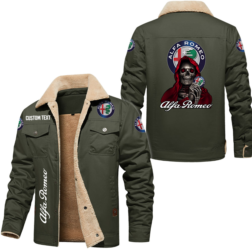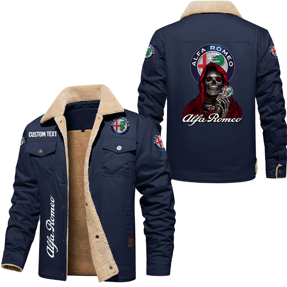 Alfa Romeo Skull Art Print Custom Name Cargo Fleece Lined Cotton Jacket