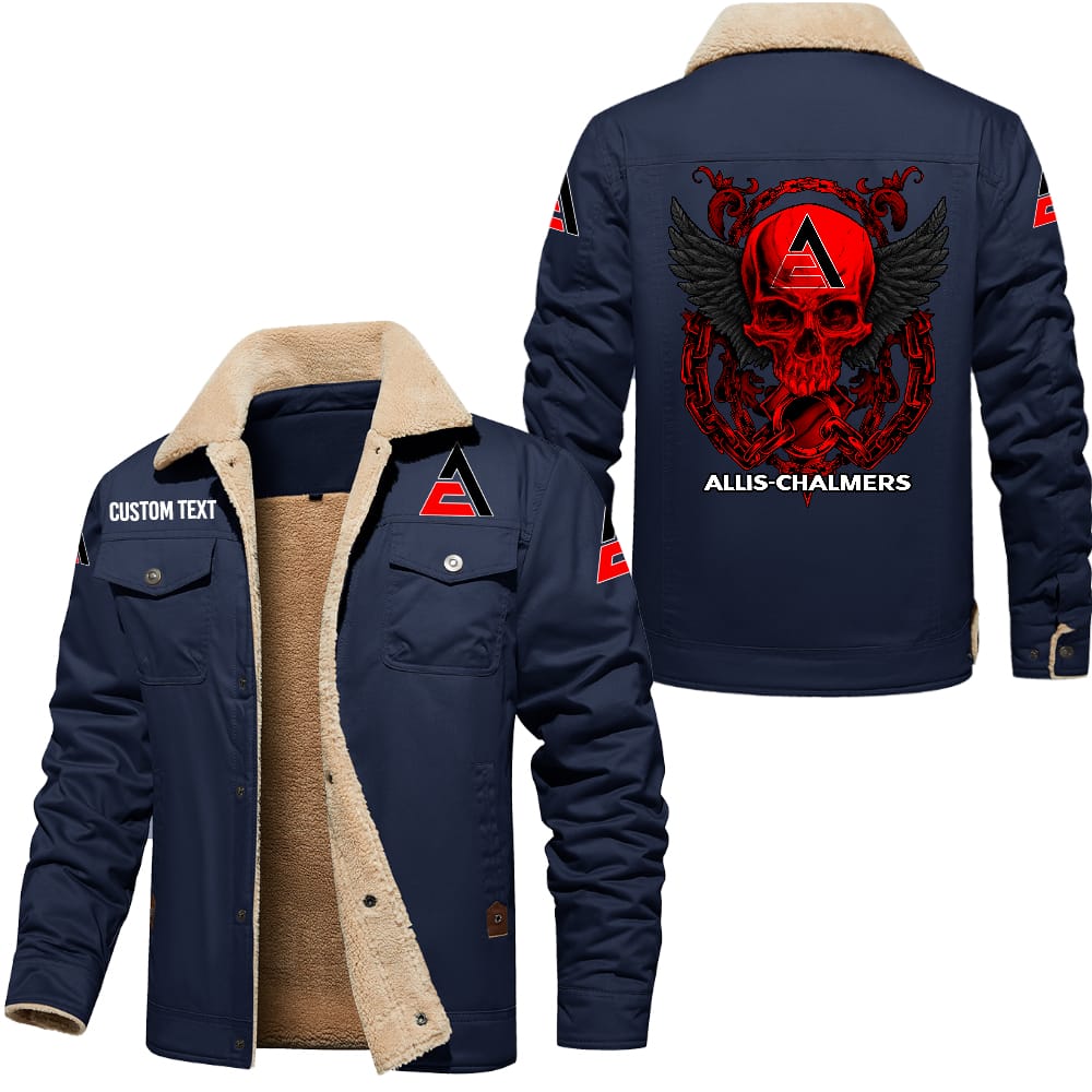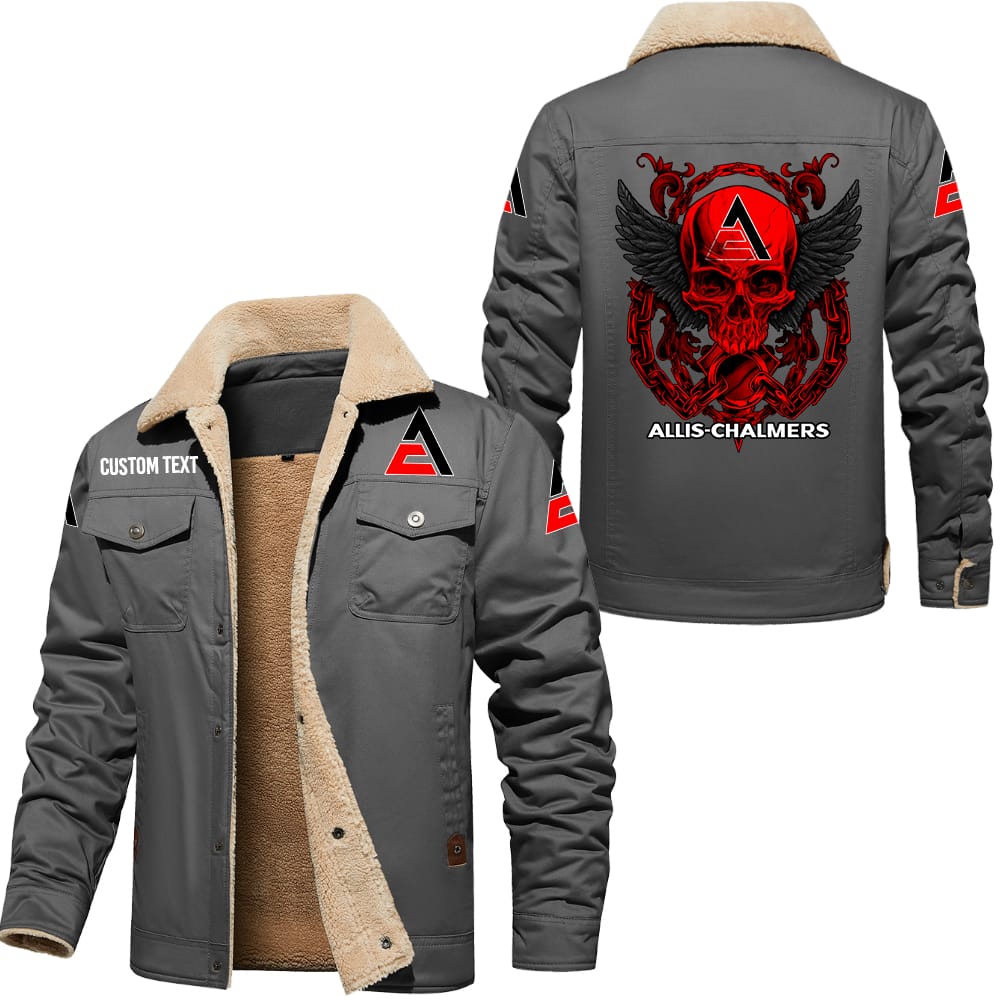 Allis Chalmers Custom Name Skull Design Cargo Fleece Lined Cotton Jacket