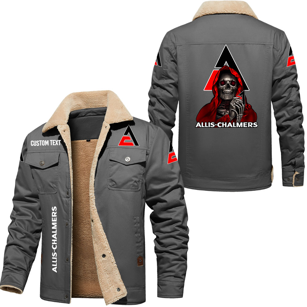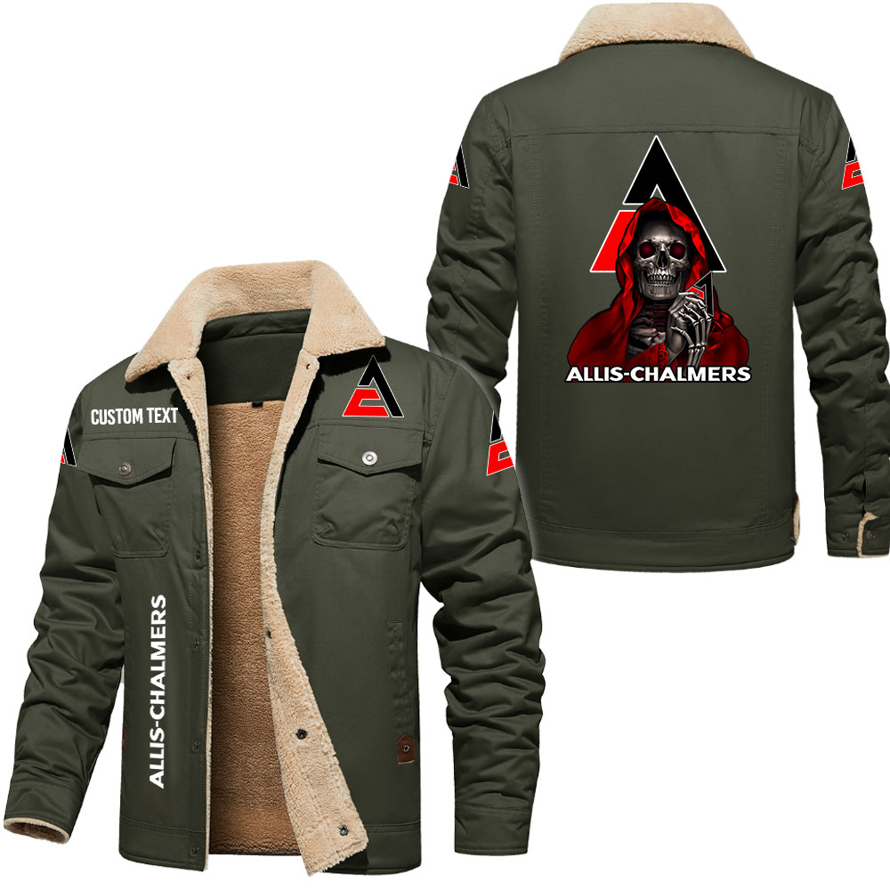 Allis Chalmers Skull Art Print Custom Name Cargo Fleece Lined Cotton Jacket