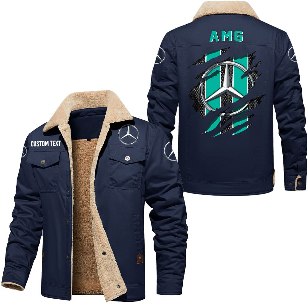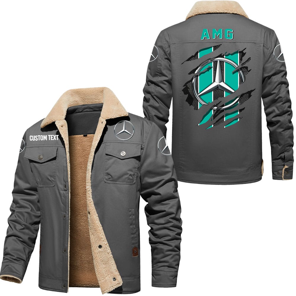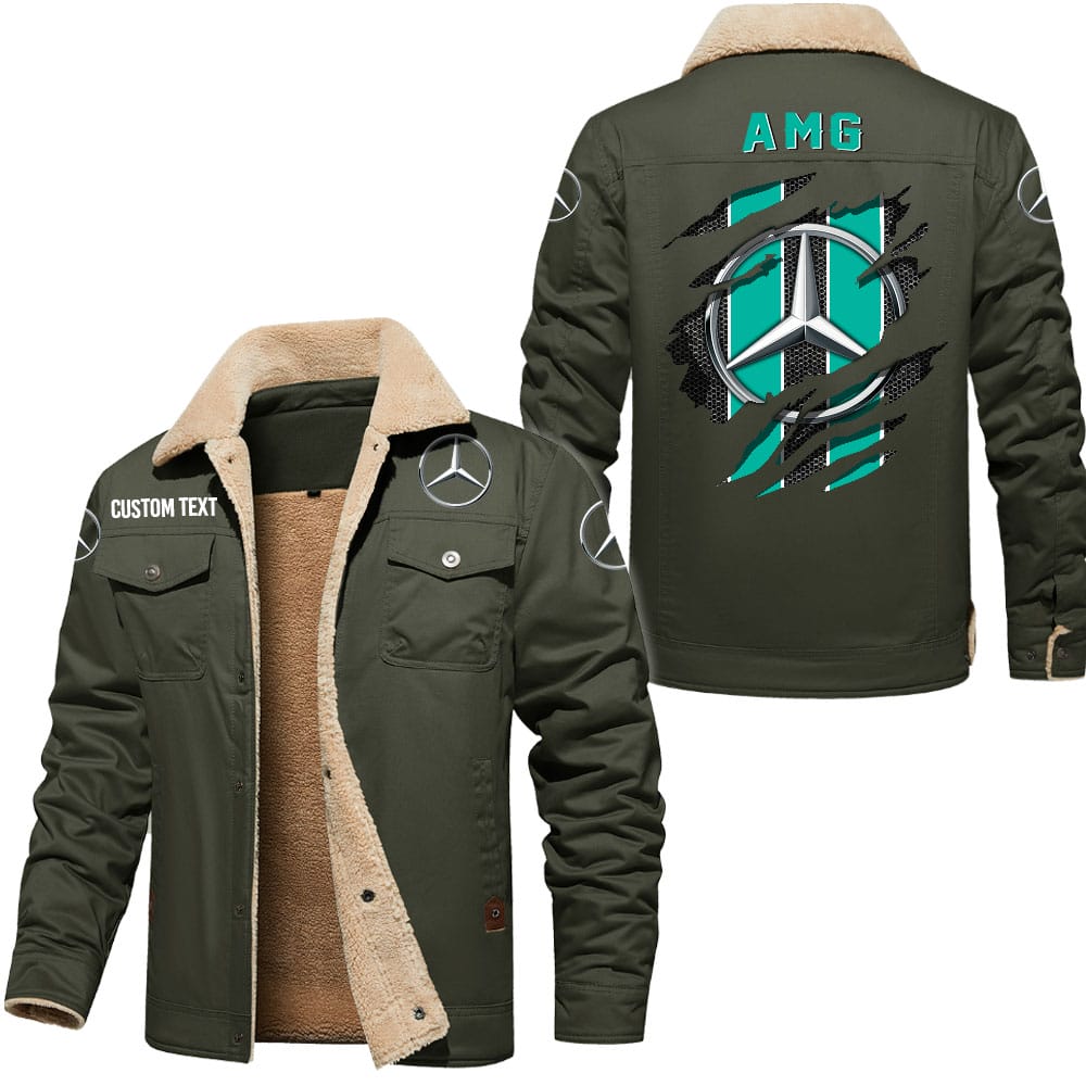 AMG Logo Custom Name Cargo Fleece Lined Cotton Jacket