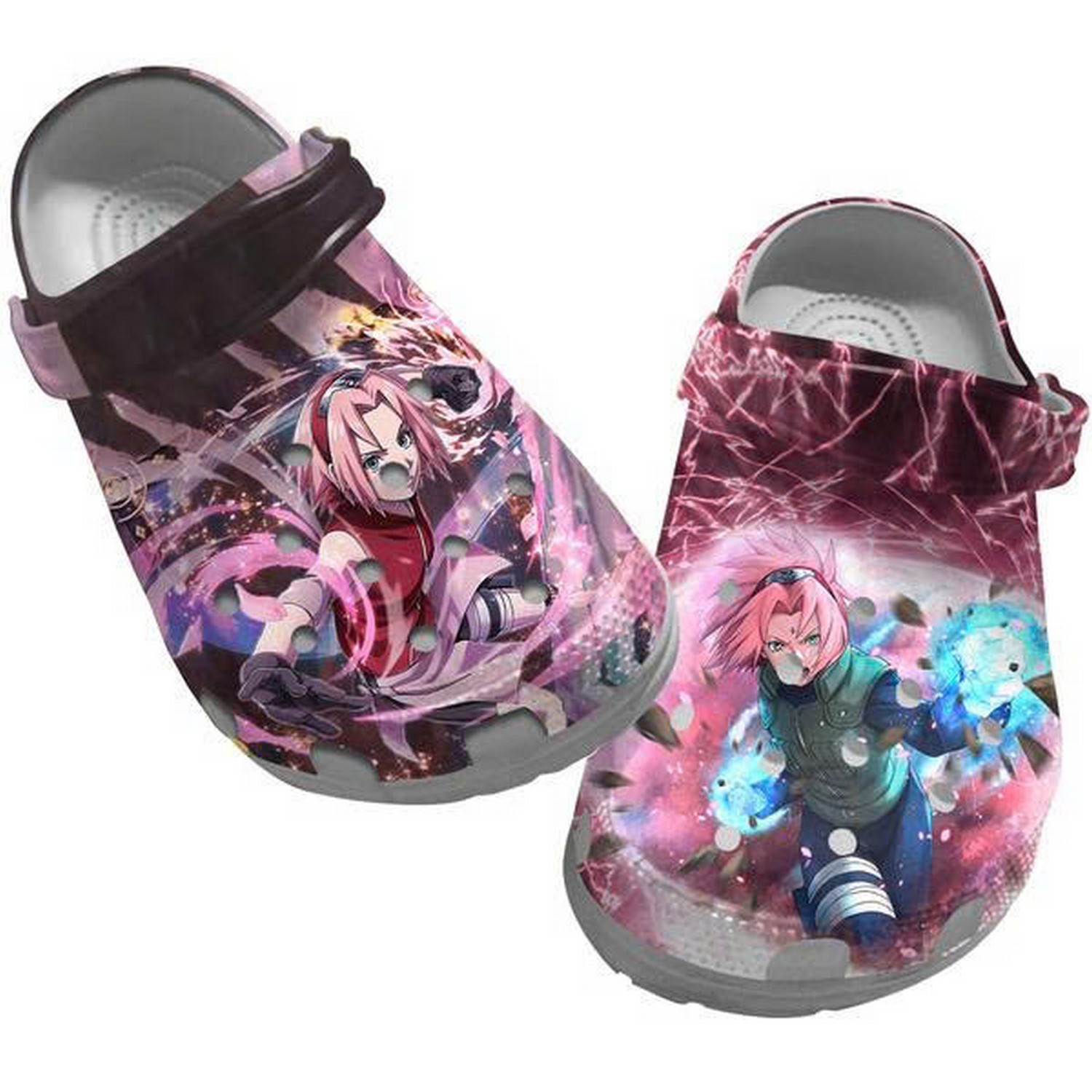 Anime Naruto Haruno Sakura Fighting Black Monster Clogs For Kids And Adults