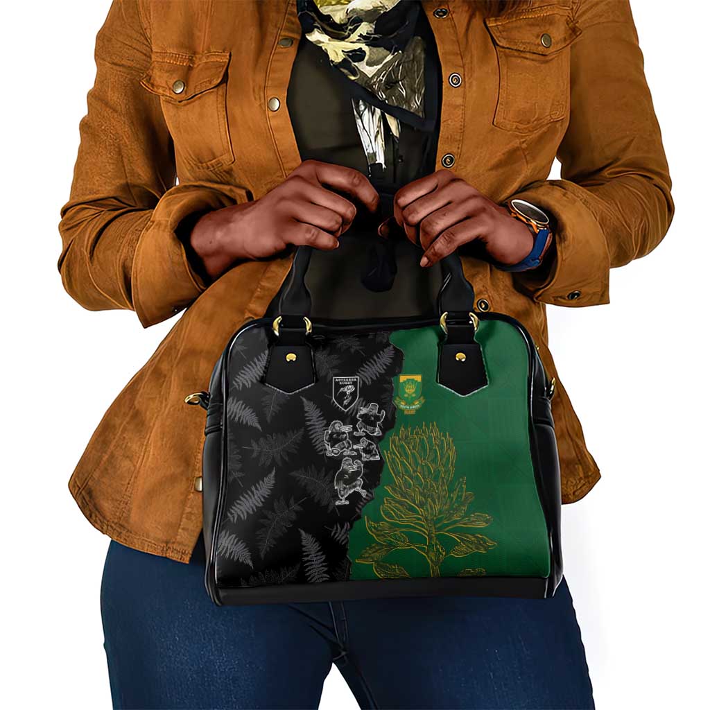 Aotearoa South Africa Rugby Freedom Cup Shoulder Handbag Kiwi Warriors Haka With King Protea Symbol