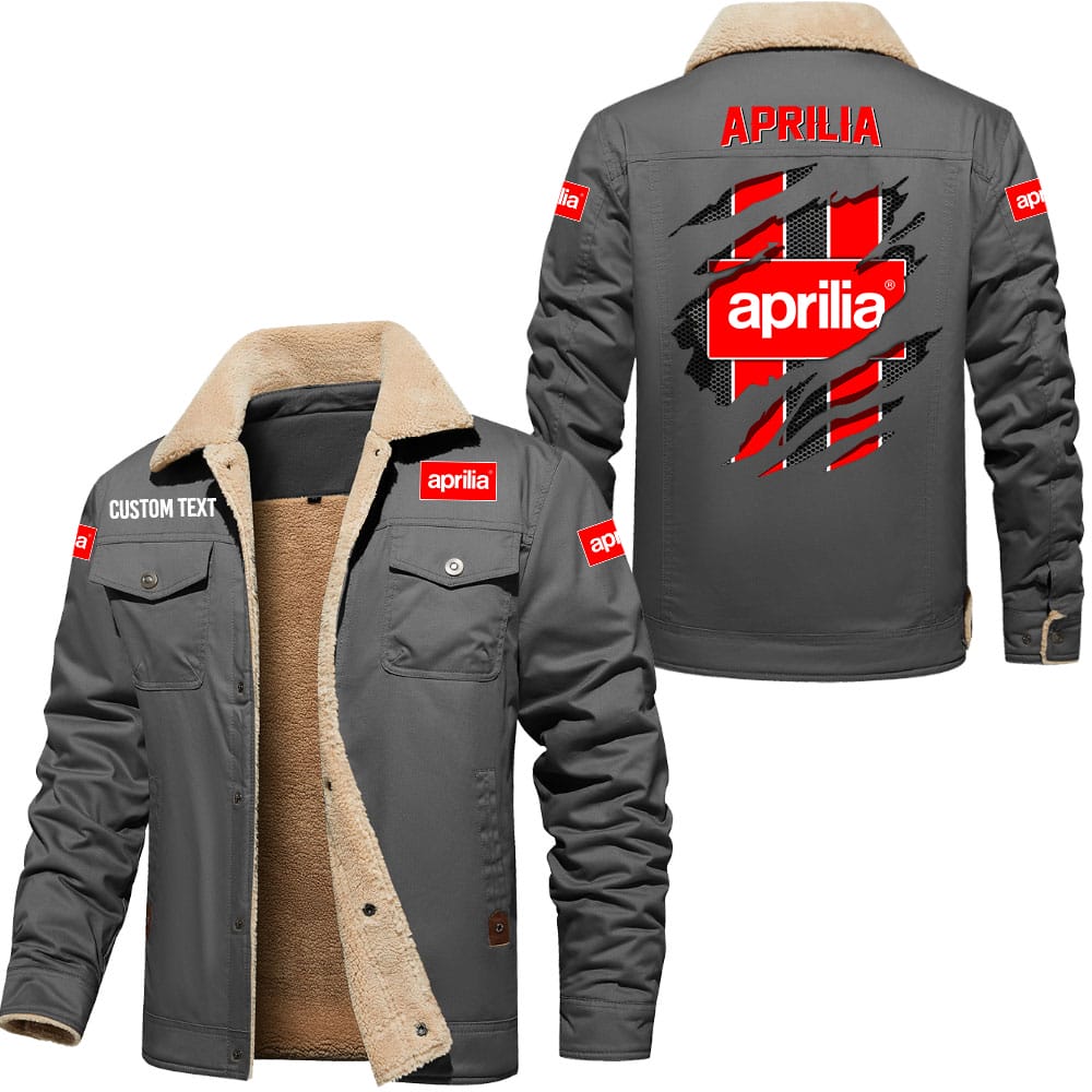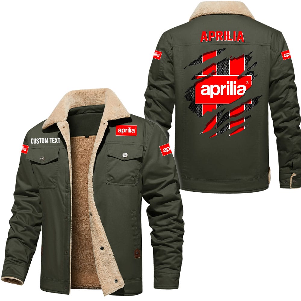 Aprilia Logo Custom Name Cargo Fleece Lined Cotton Jacket